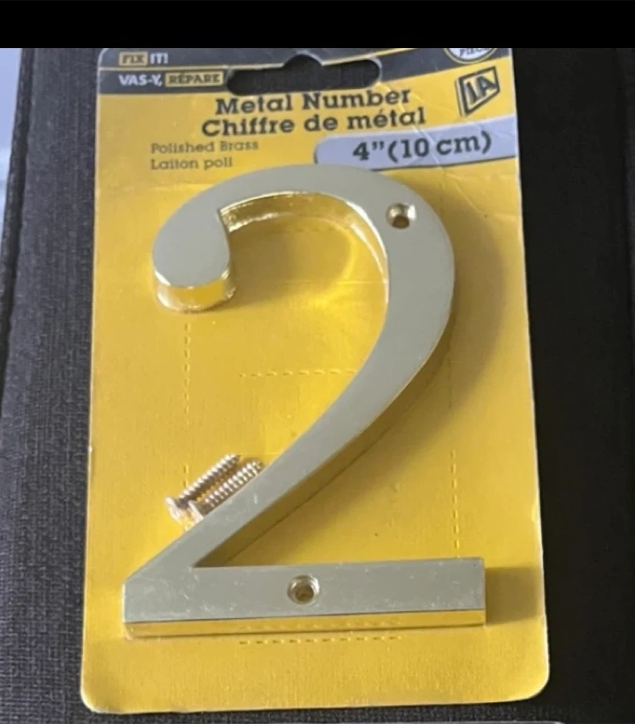 Selling a brand new FIX IT! metal number 2. It's a polished brass finish and measures 4 inches (10 cm). Perfect for adding a touch of elegance to your home!