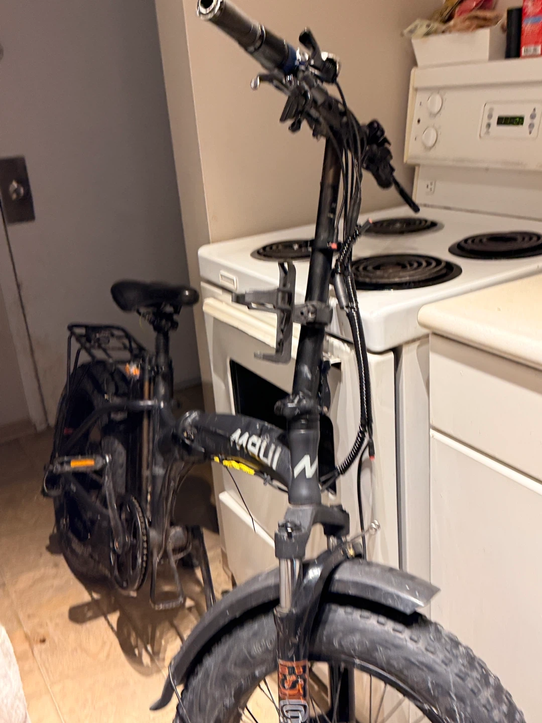 Selling a Magcli e-bike. It's in good condition and ready for a new owner. Great for getting around town! Needs a charge cord but is charged to show it works . 1000km. For person that is taller than 5 foot two.