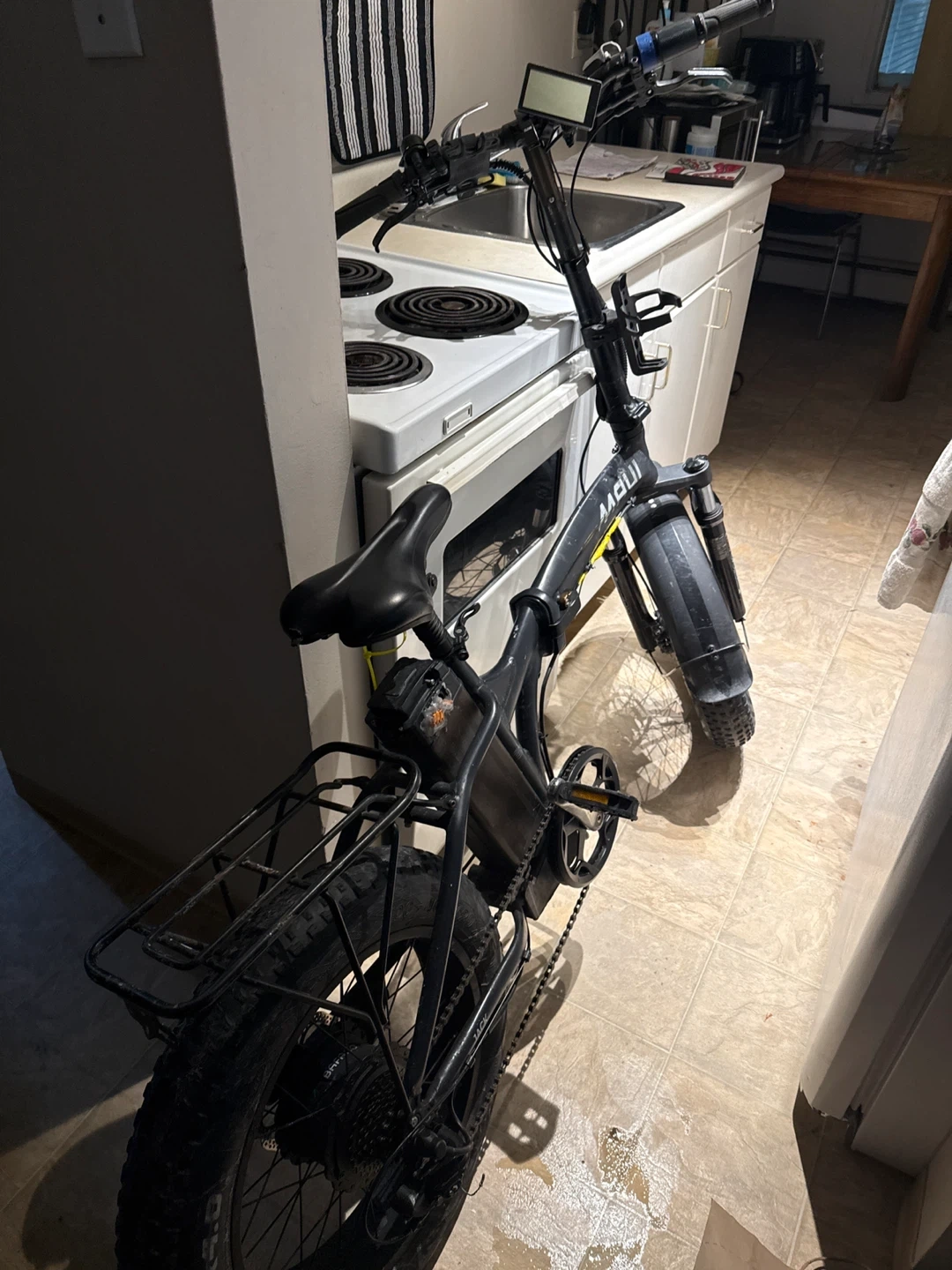 Selling a Magcli e-bike. It's in good condition and ready for a new owner. Great for getting around town! Needs a charge cord but is charged to show it works . 1000km. For person that is taller than 5 foot two.