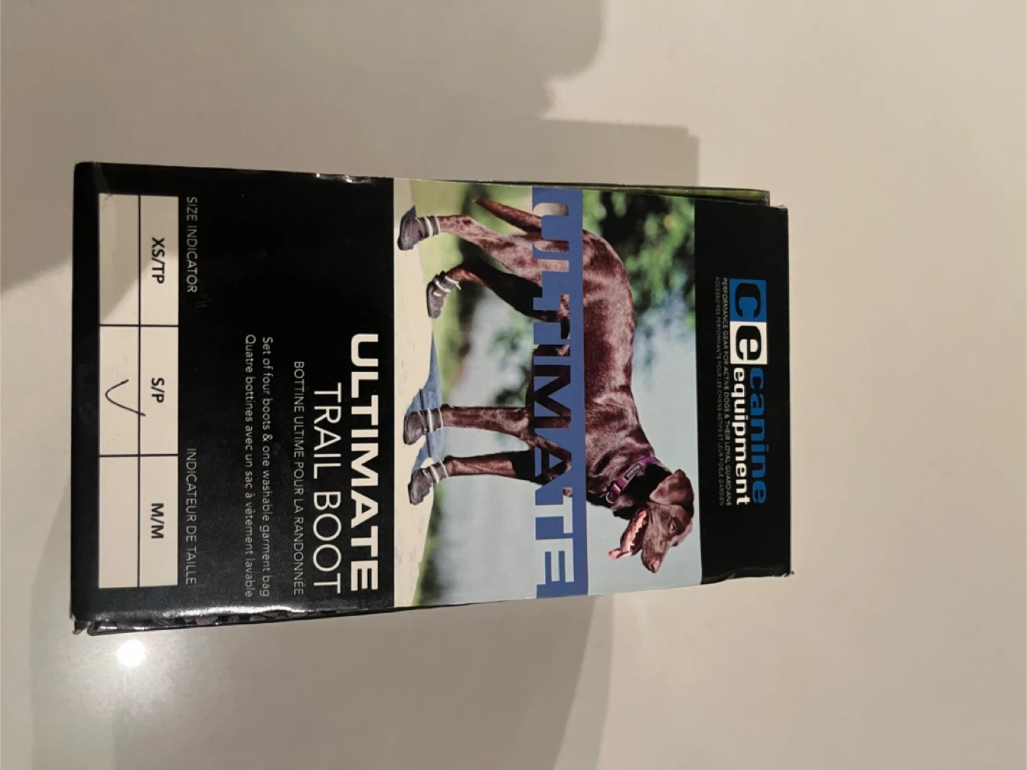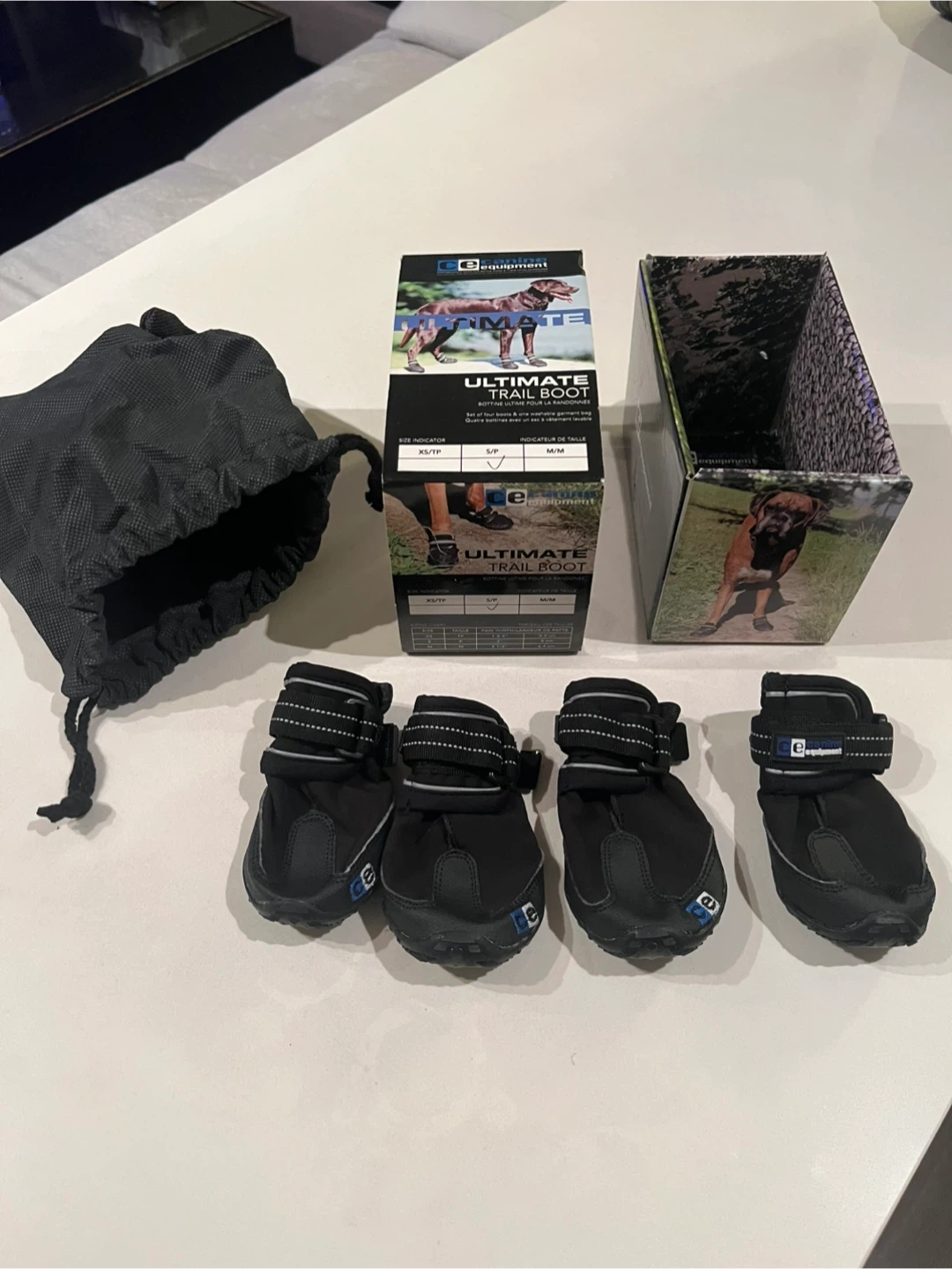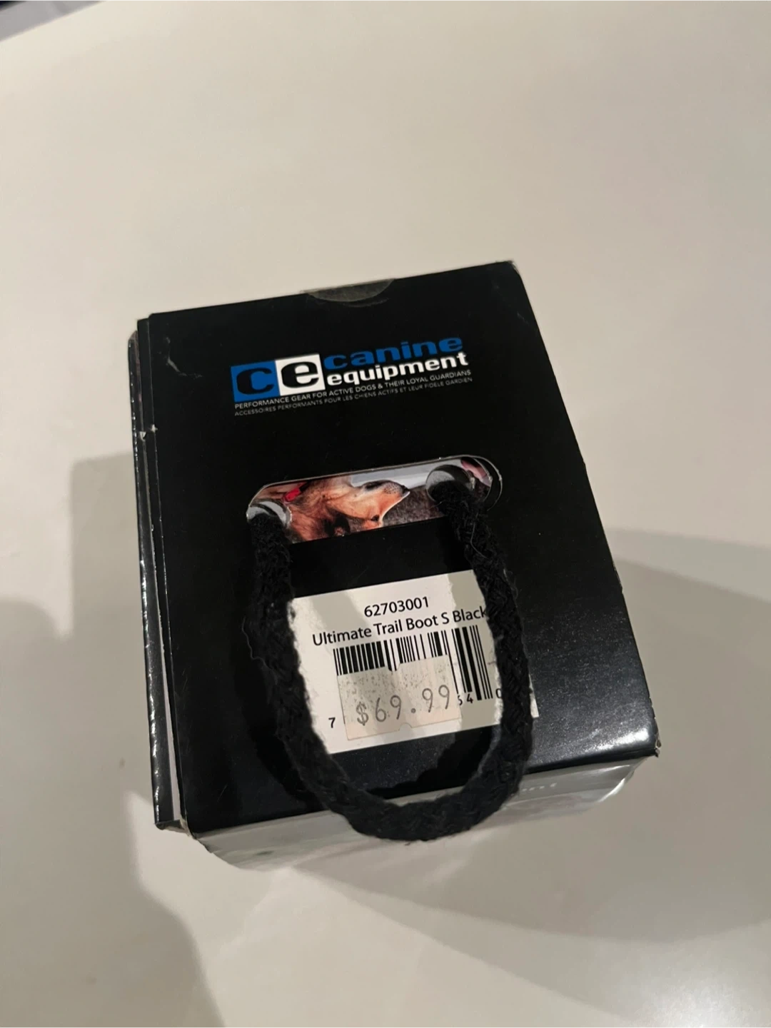 Selling a set of Canine Equipment Ultimate Trail Boots in size small. These are in black and come with their original box and a washable garment bag. Retails for $69.99