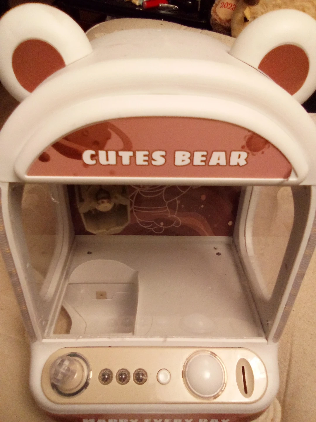 Selling a CUTES BEAR candy grabber machine! It's in great condition and ready for some fun. Perfect for parties or just a little at-home entertainment for the kids (or adults!) I washed it and wiped it down cause y was dirty, these were old pics.
