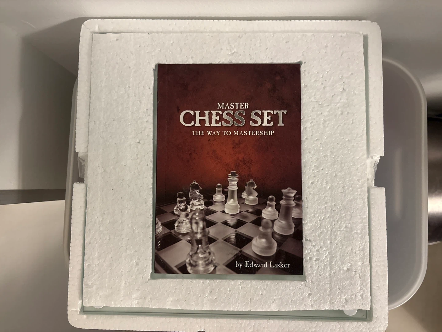 Selling a Master Chess Set that includes glass chess pieces and a glass board! The set also comes with a 64-page instructional book to help you master the game. It's all packed in its original box