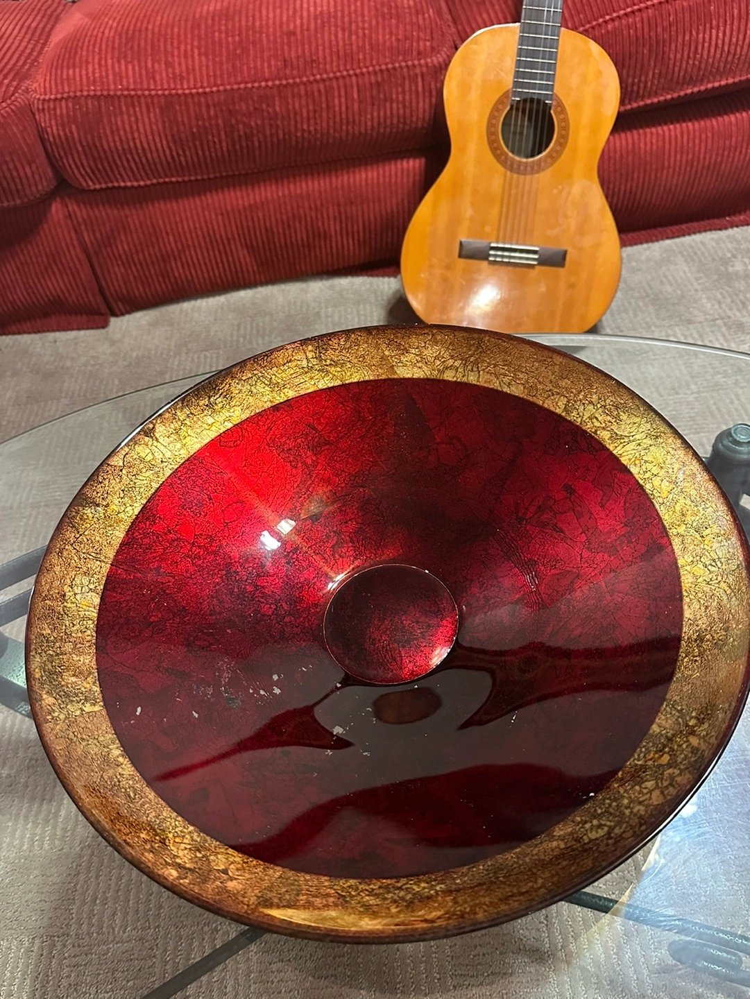 Red and gold glass bowl 🧡