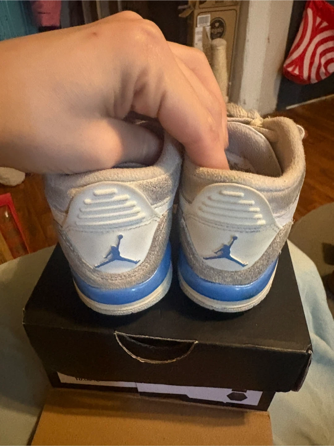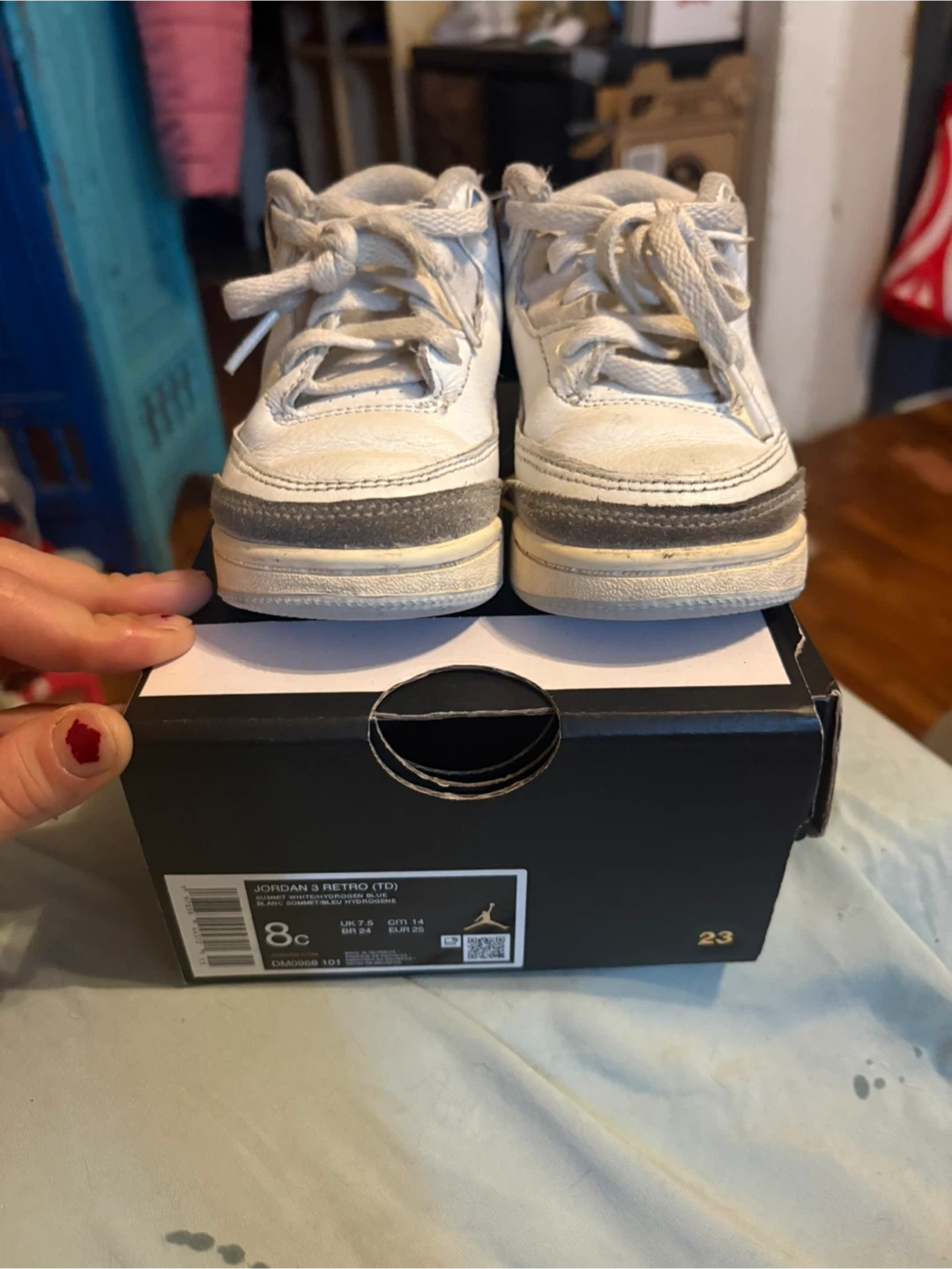 Selling a pair of Jordan 3 Retro TD toddler shoes in size 8C. They show some signs of wear, as you can see in the pictures, but they still have plenty of life left! The box is included.