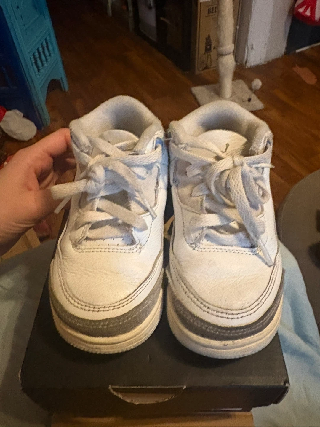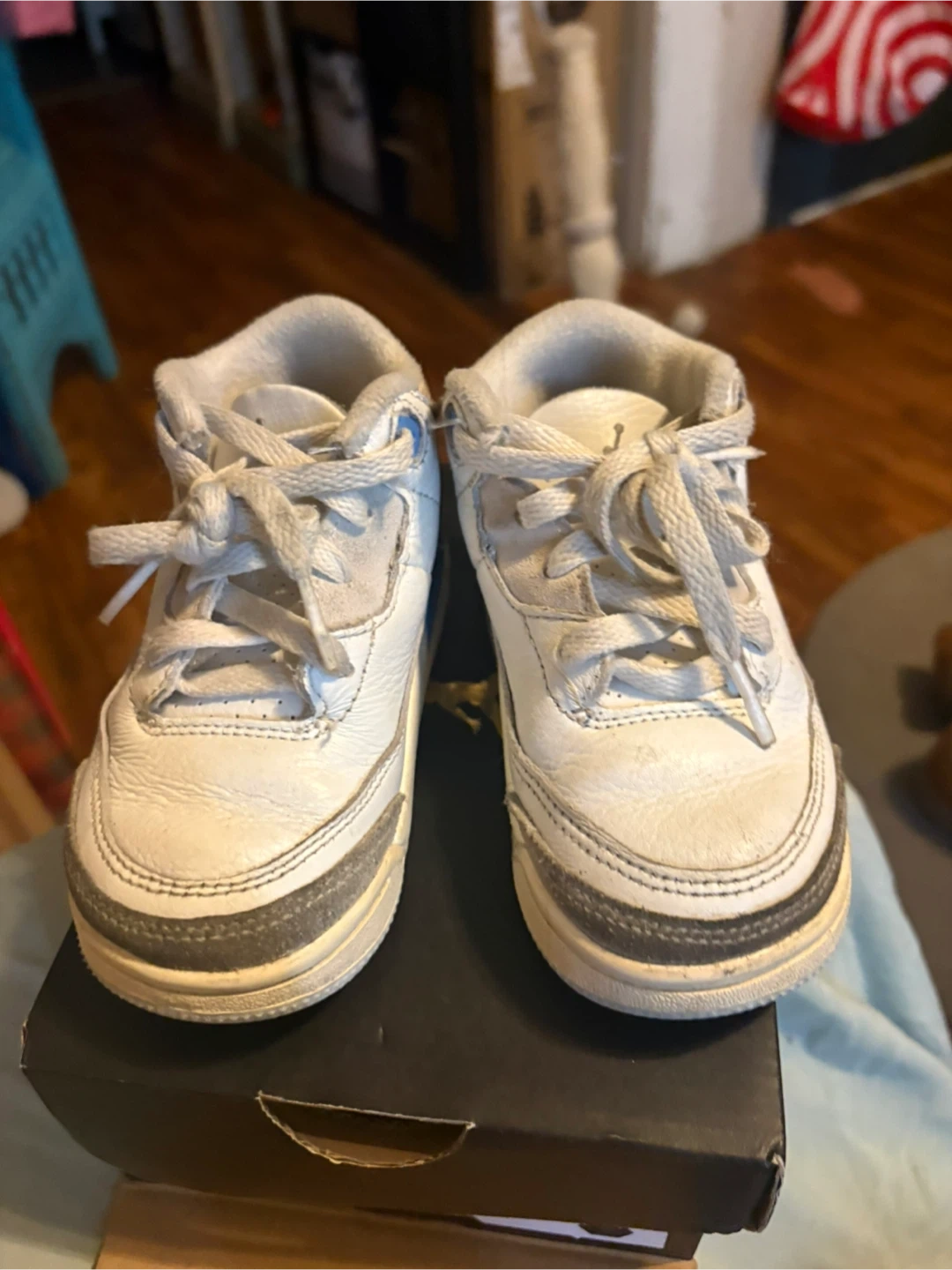 Selling a pair of Jordan 3 Retro TD toddler shoes in size 8C. They show some signs of wear, as you can see in the pictures, but they still have plenty of life left! The box is included.
