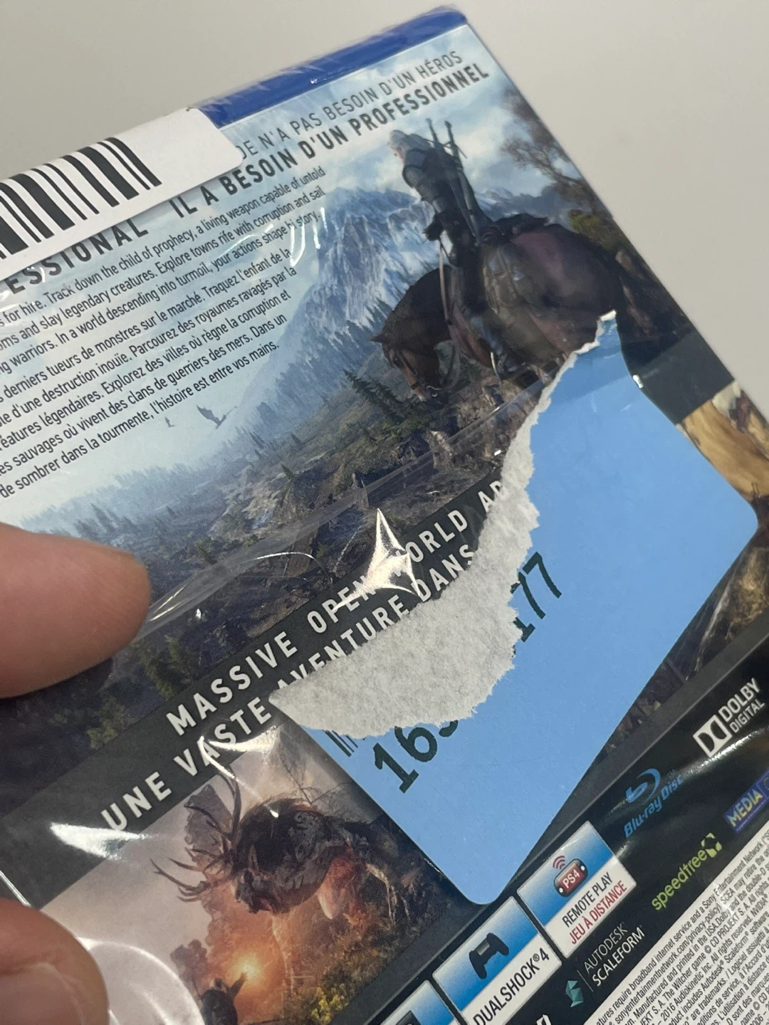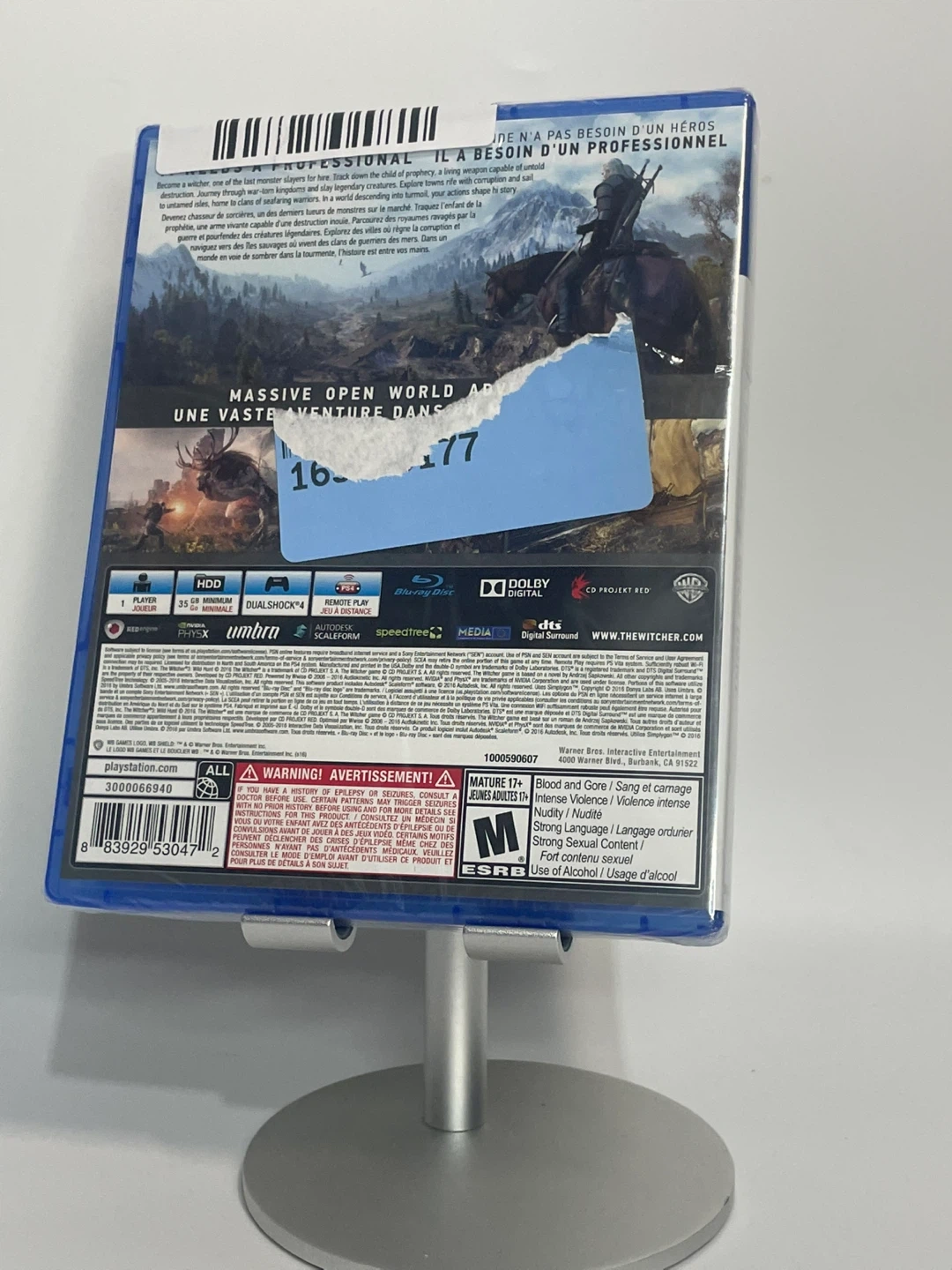 Selling The Witcher 3: Wild Hunt for the PS4! It's a massive open-world adventure game with a detailed world map and stickers included. Rated M for Mature 17+ due to blood and gore, intense violence, strong language, and alcohol use.