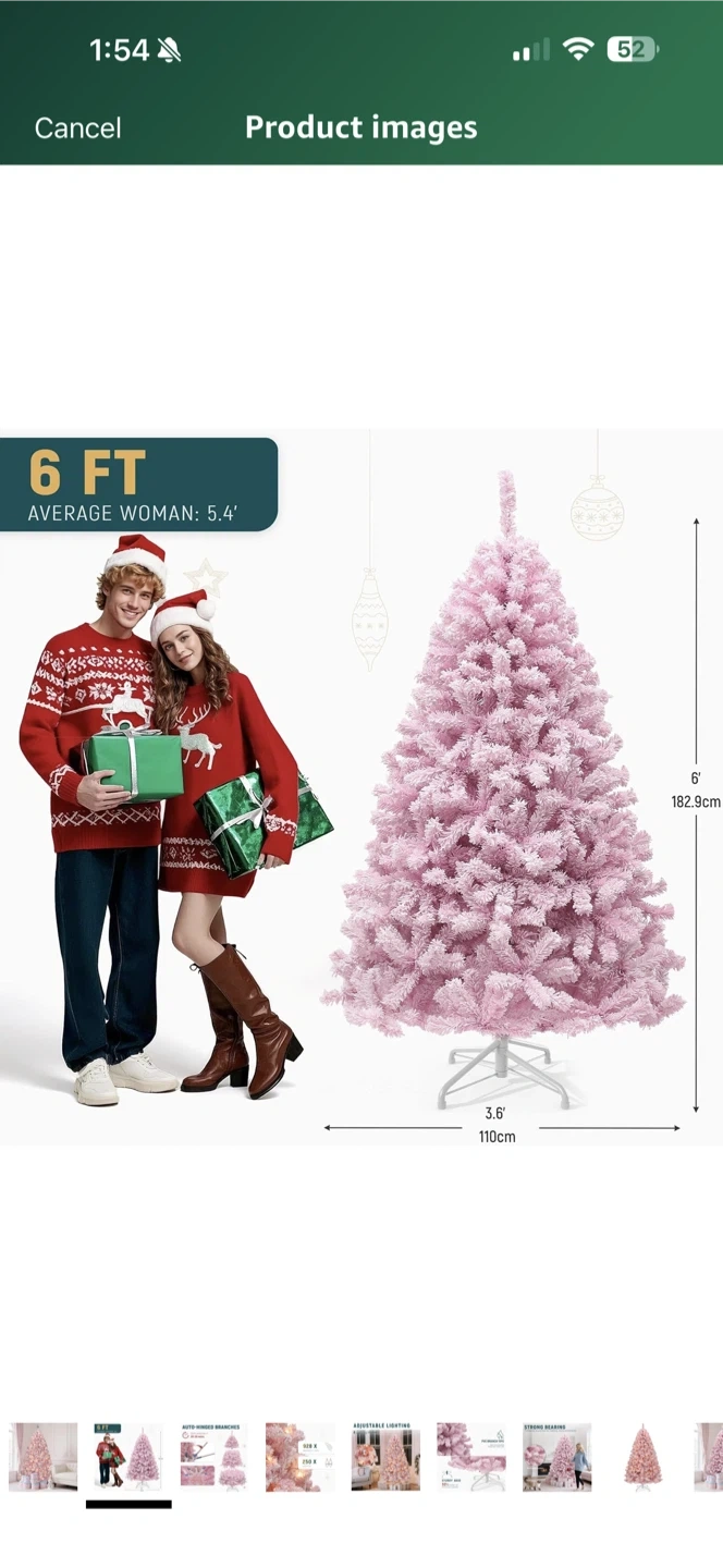 Get ready for the holidays with this beautiful 6 FT pink artificial Christmas tree! It's brand new and still in the box, ready to bring a touch of whimsy to your festive decor. The box measures 96.5x32x33 cm.
