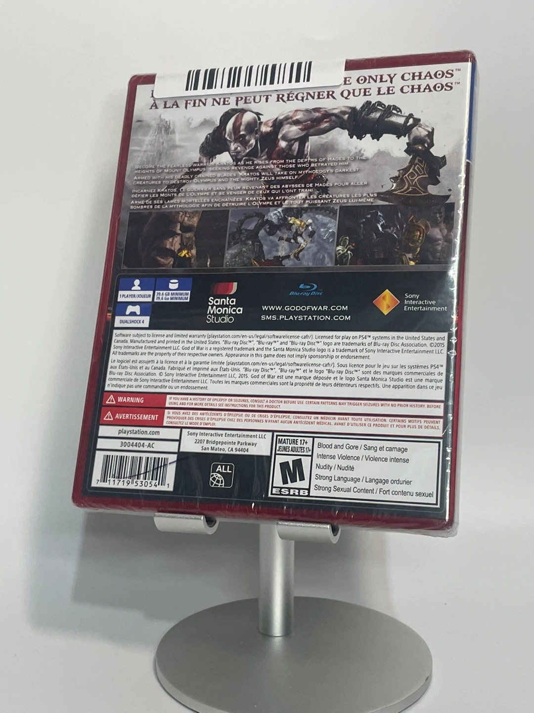 Selling God of War Remastered for the Playstation 4 as part of the Playstation Hits series. Rated Mature 17+ by ESRB. A great game with intense violence and strong sexual content, so it might not be for everyone