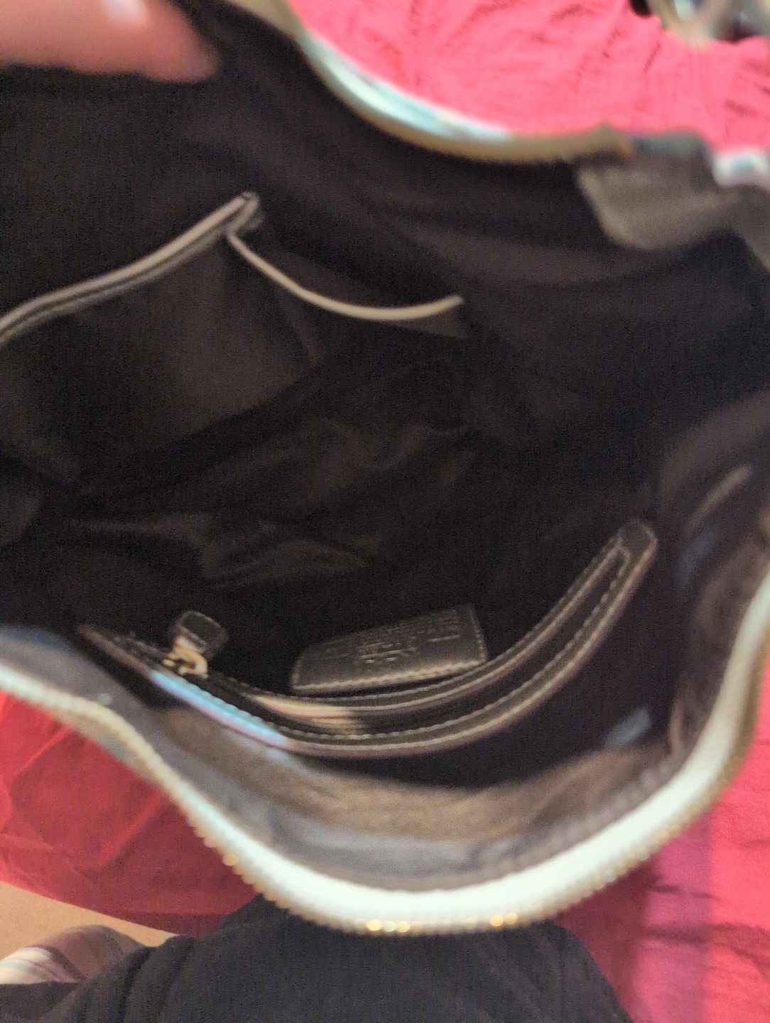 Selling a stylish Coach handbag featuring the signature 'C' print in shades of blue and grey. It's in good condition and has a silver-tone trim. Perfect for everyday use!