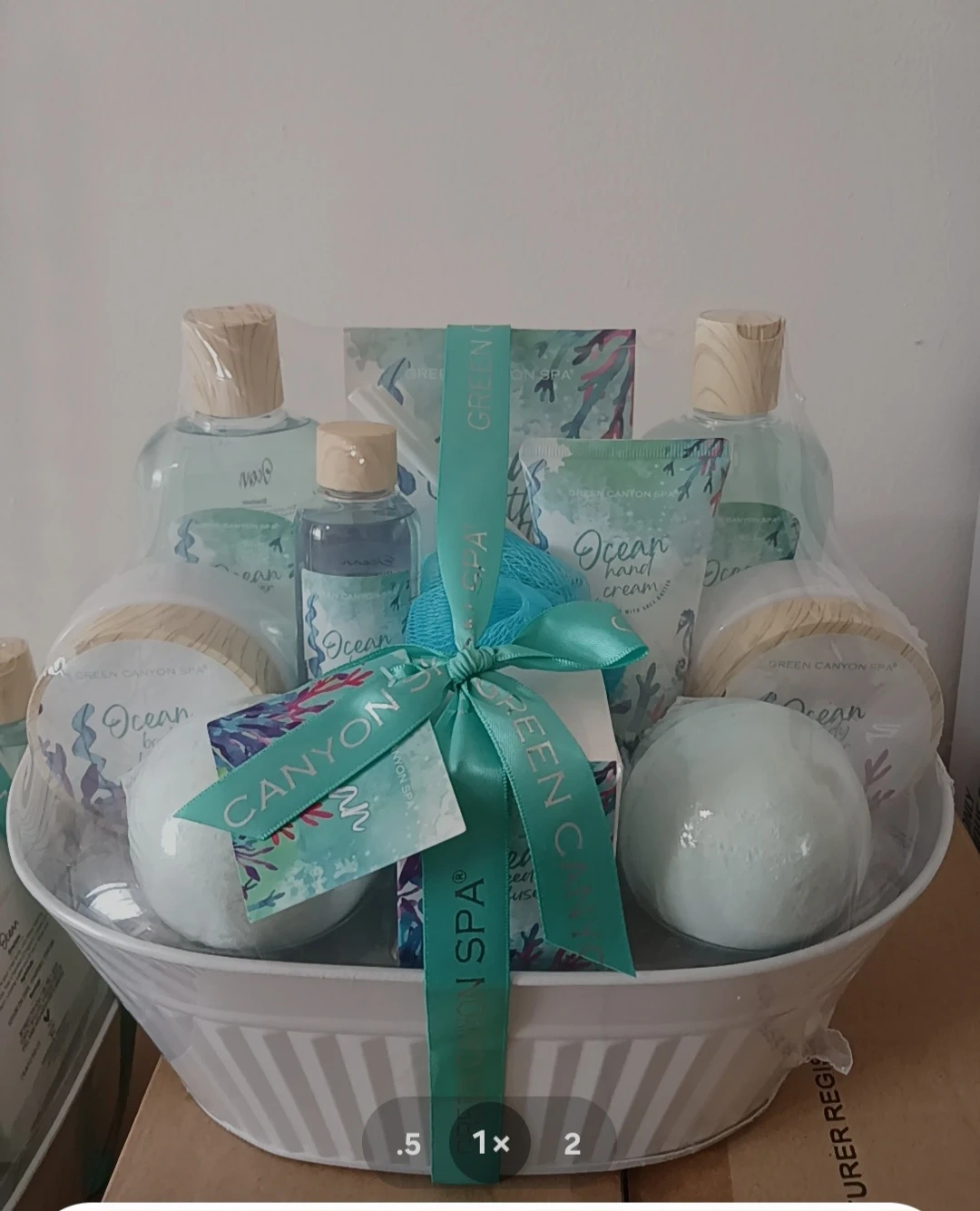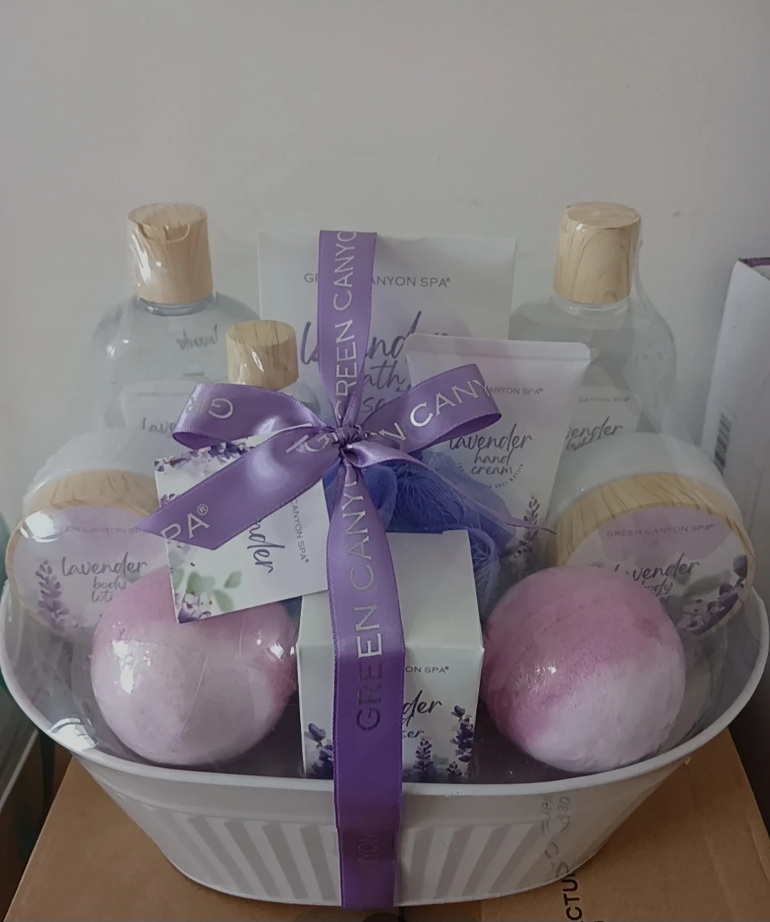 Selling a Green Canyon Spa bath gift basket. It includes a variety of bath products, perfect for a relaxing spa day at home! It comes in a nice basket, making it a great gift option as well