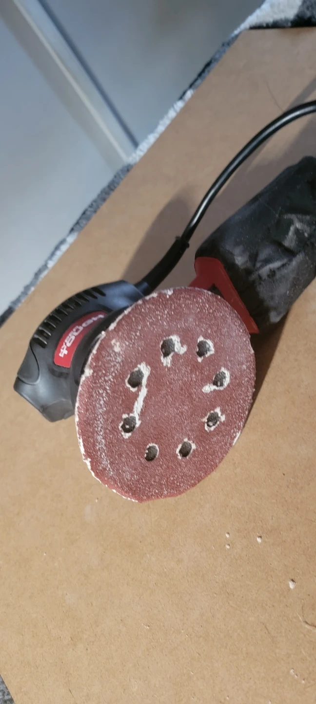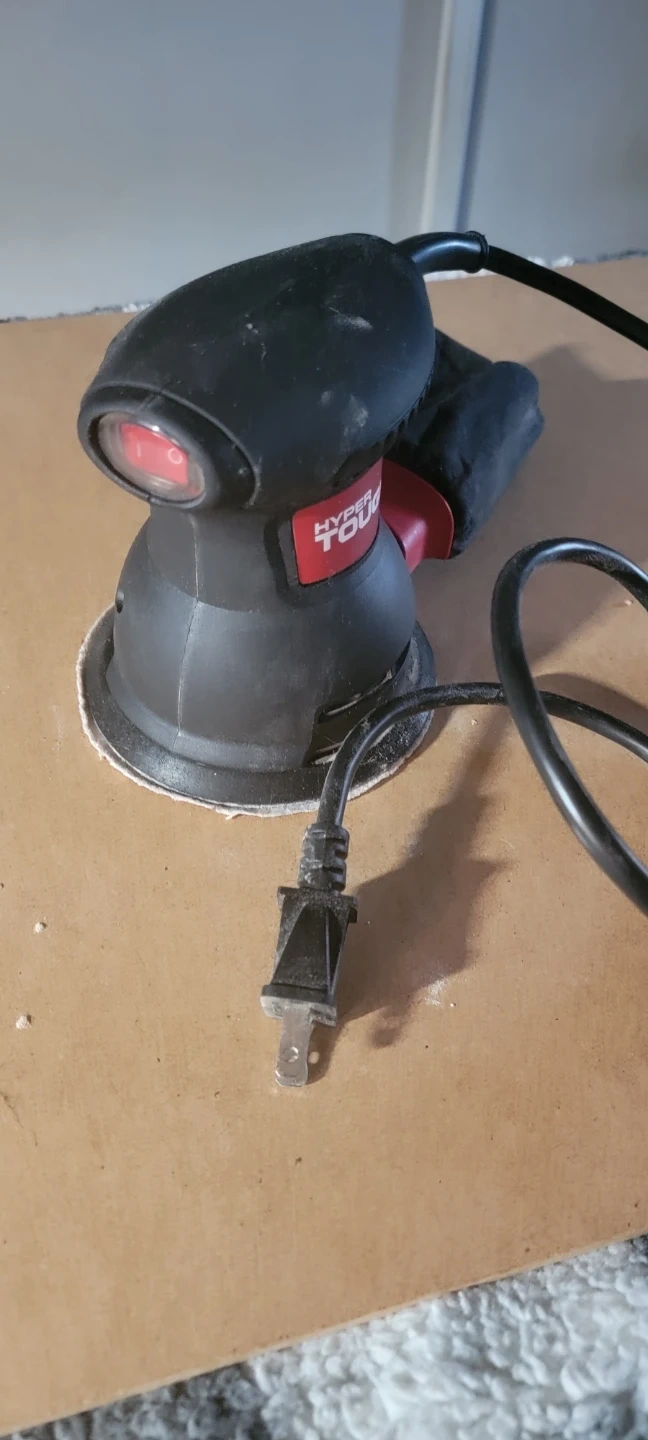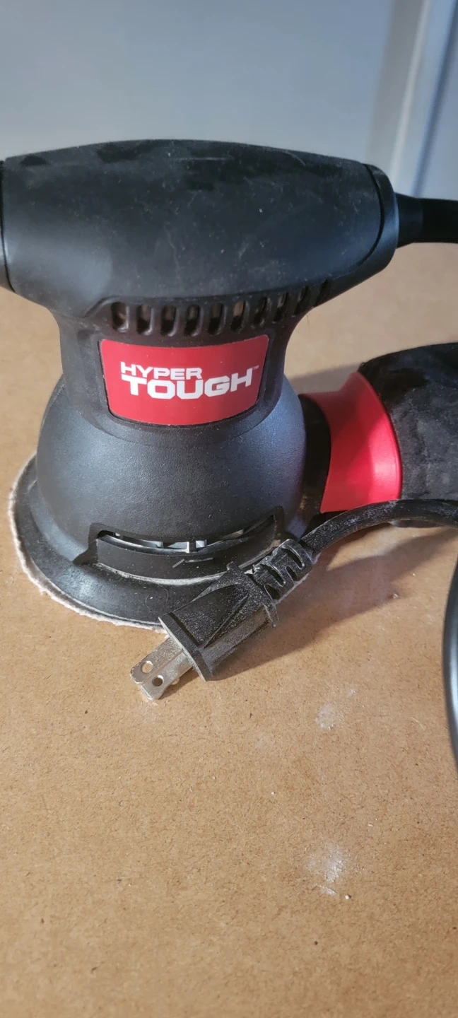 Selling a Hyper Tough random orbital palm sander! It's a 2 amp sander with a comfortable rubber palm grip. It is designed for fine finishes and has an industrial fan-cooled motor with ball bearing construction don't have sander paper