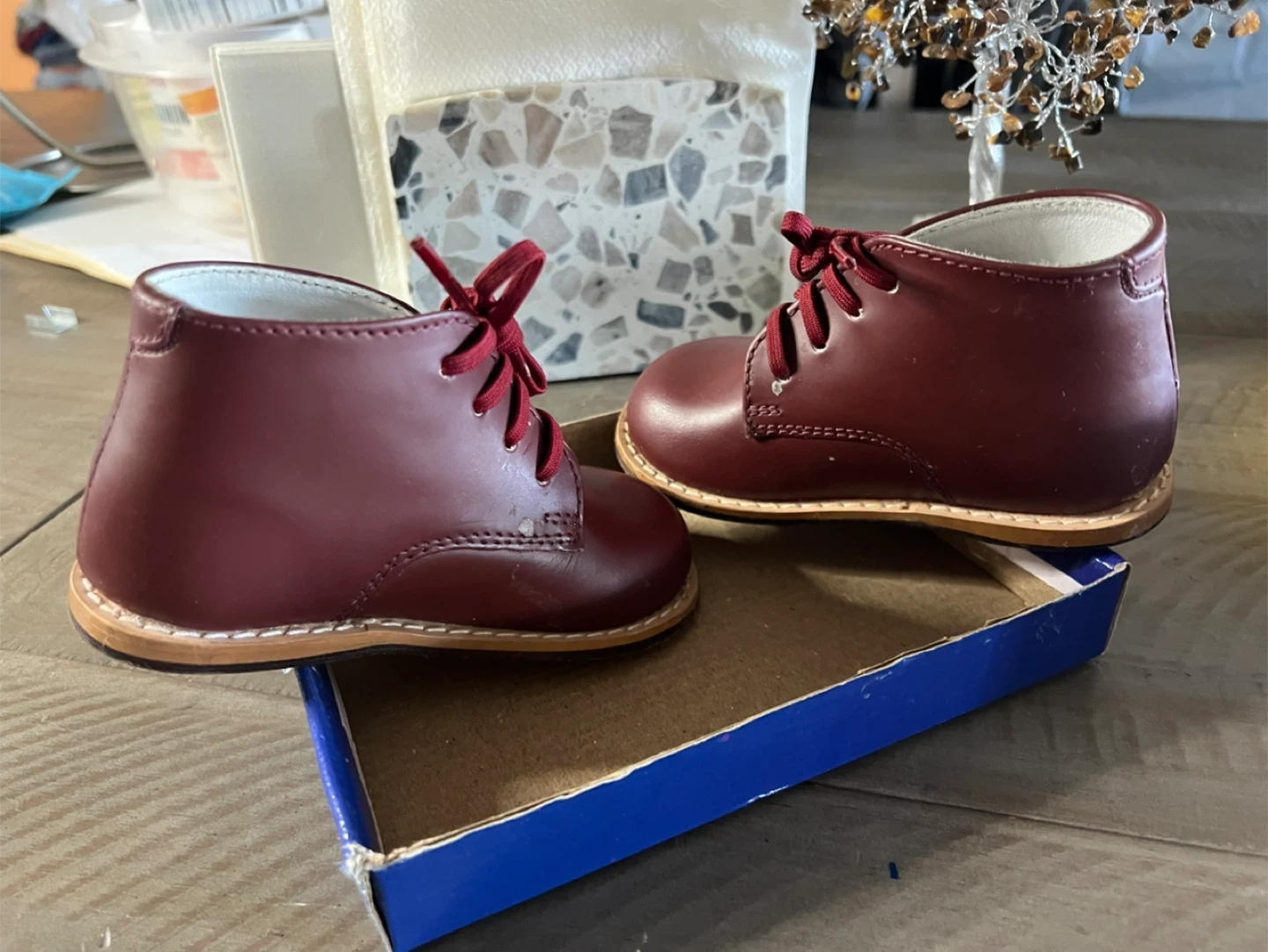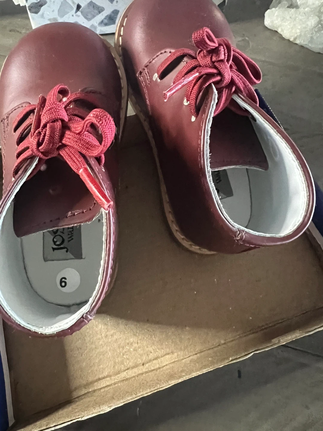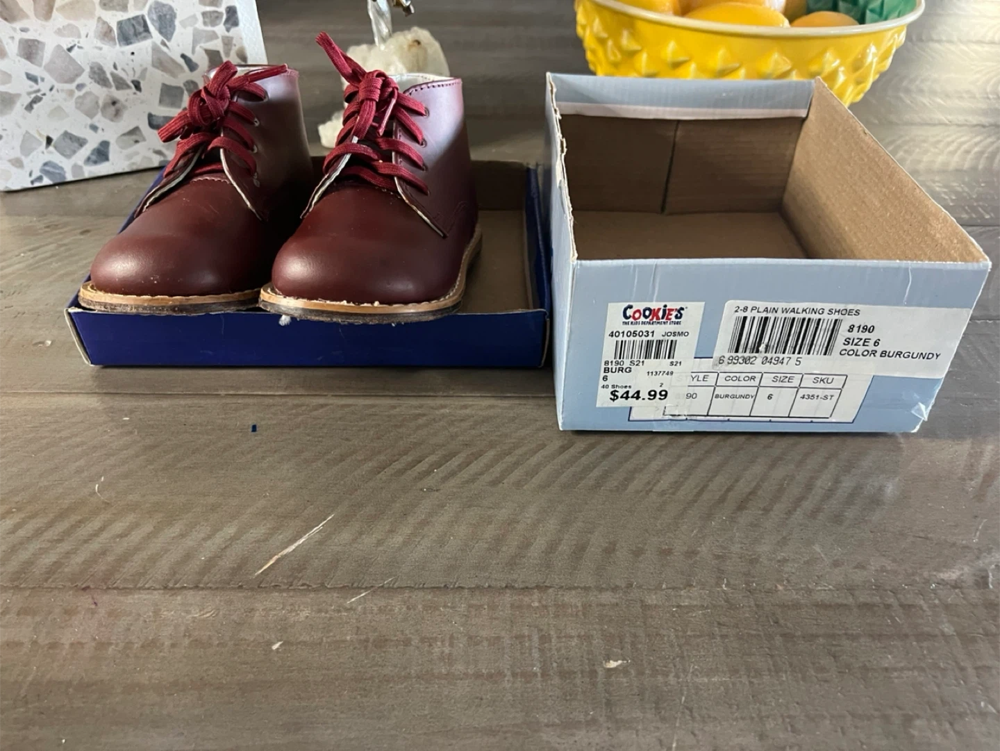 Here are some adorable Cookies brand 2-8 Plain Walking Shoes! They are a size 6 and the color is burgundy. The original box is included! These shoes are perfect for your little one's first steps