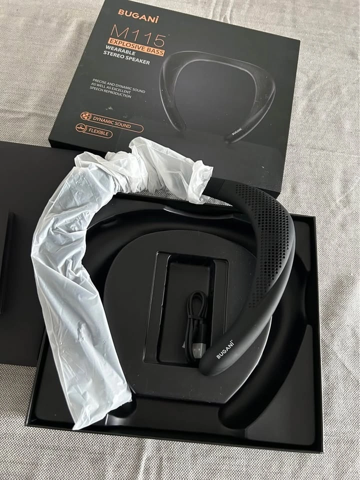 Selling a brand new BUGANI M115 wearable stereo Bluetooth speaker. The device is 100% new, never used, sealed in original packaging.