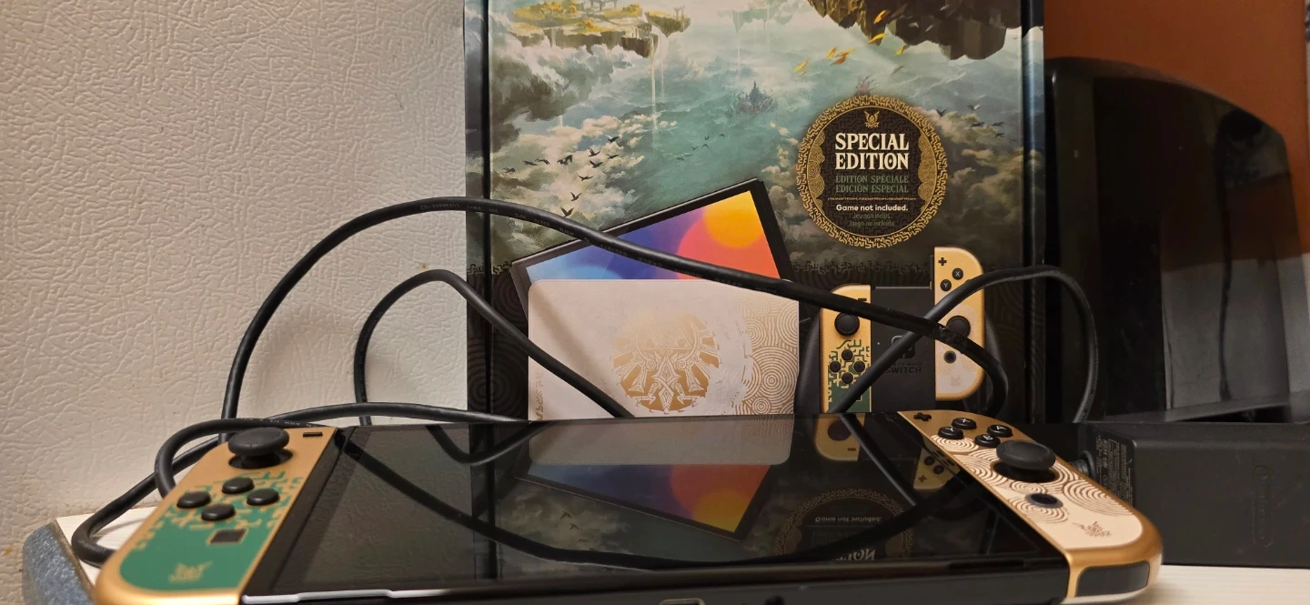 Selling a Nintendo Switch OLED model in the Zelda Tears of the Kingdom edition! This special edition console features a unique design inspired by the game. It comes with the original box and all included chords as well as a like new console. Please feel free to ask if there are any further question. Happy holidays!