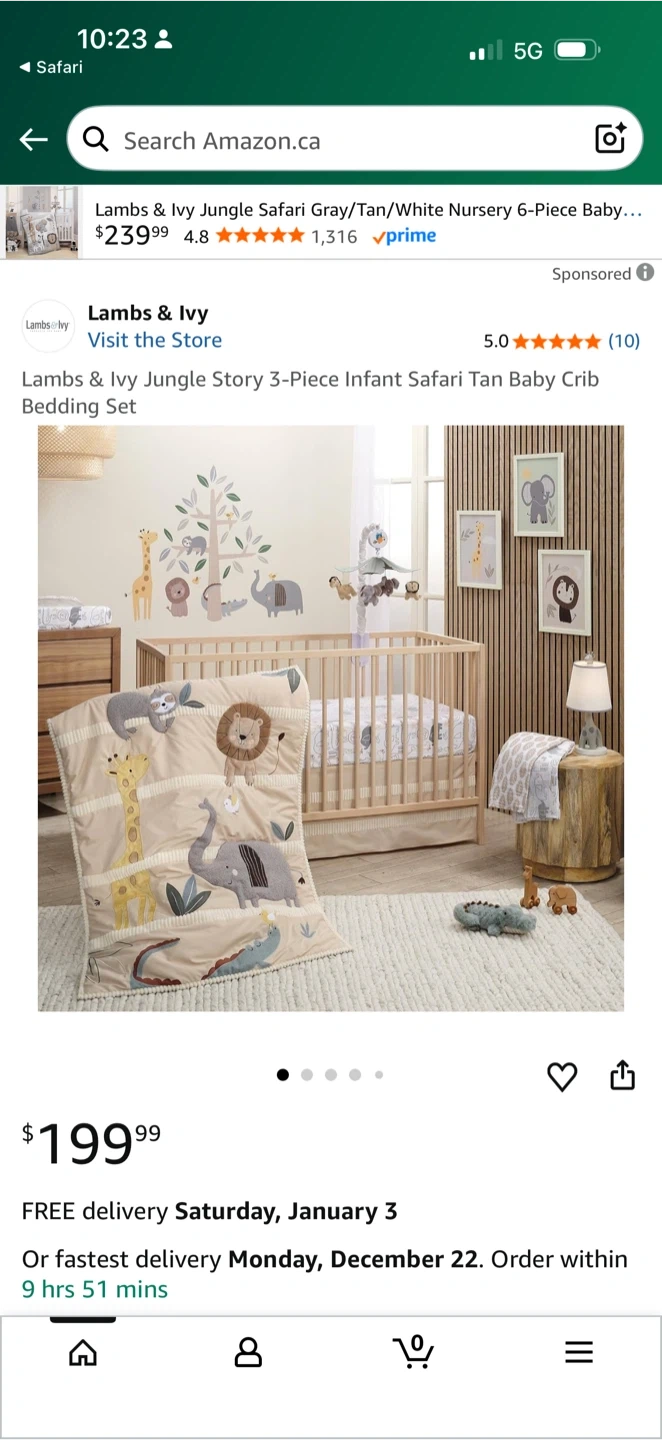 Selling a Lambs & Ivy Jungle Story 3-piece infant safari tan baby crib bedding set. It features adorable jungle animals like elephants, lions, and giraffes. The set includes a quilt, fitted sheet, and crib skirt. Perfect for creating a cozy and cute nursery!