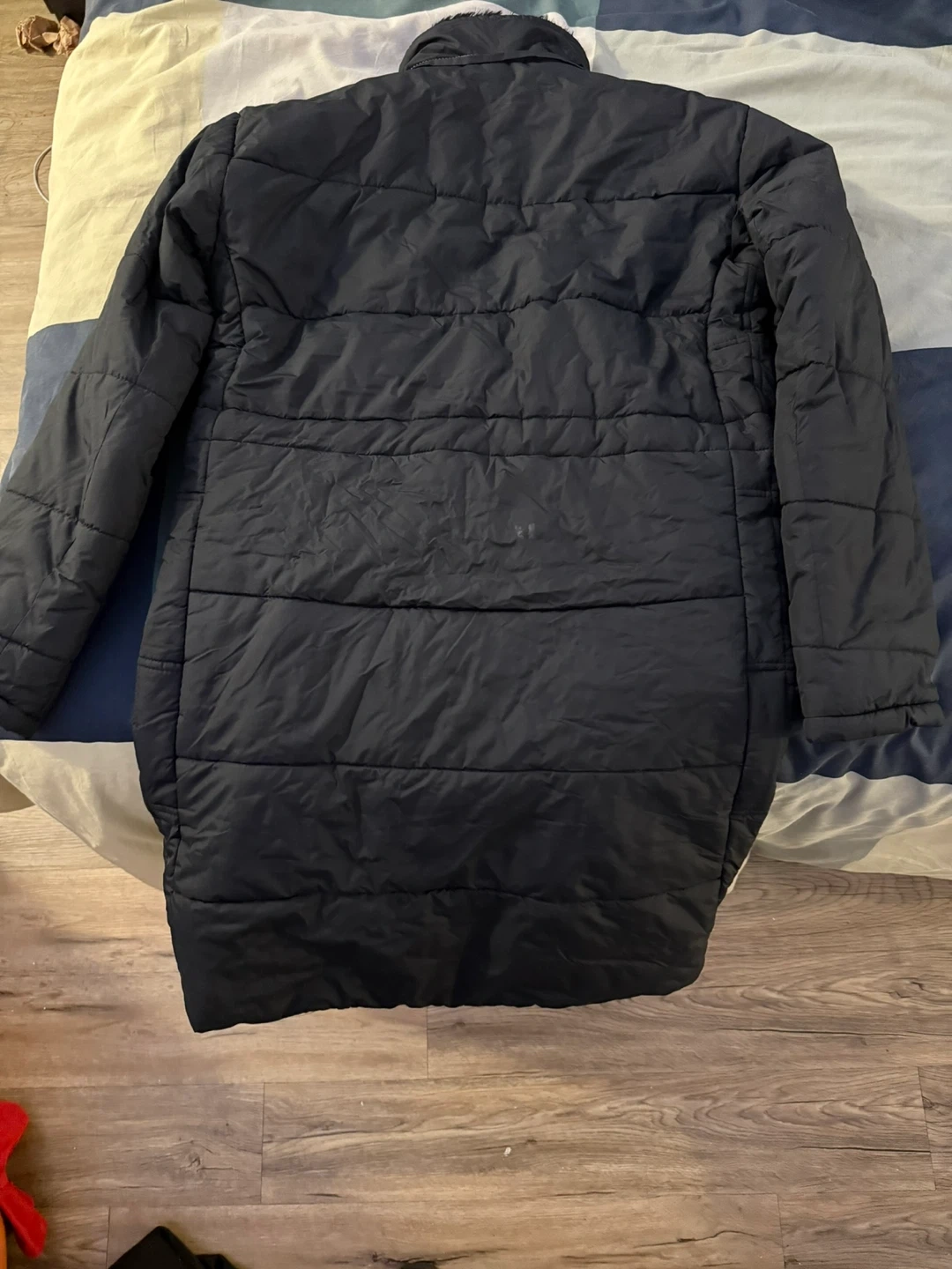 Here's a black puffer jacket in good condition. It's perfect for the colder weather. It's a stylish and warm addition to any wardrobe. Brand is Next, size is Medium with fur and lining on the inside to keep warm