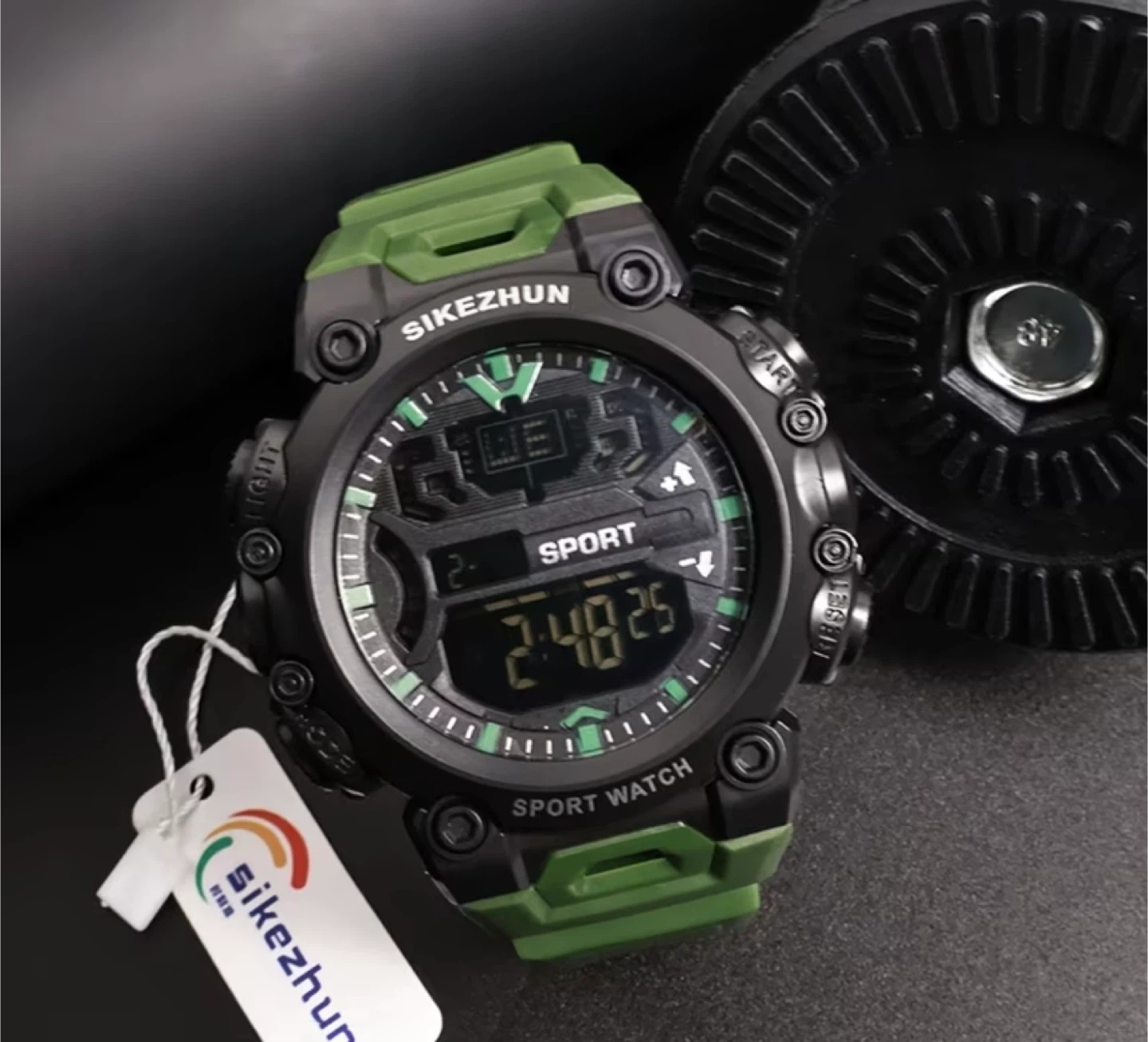 I'm selling a SIKEZHUN sport watch in black and green! It's a stylish and functional accessory.