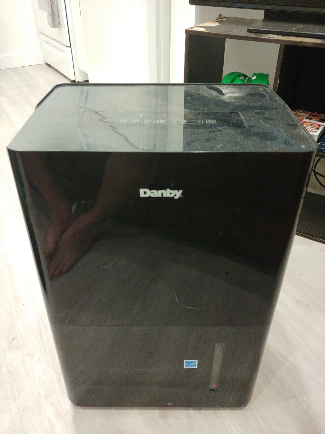 Selling a Danby dehumidifier. It's in good working condition, perfect for keeping your home dry and comfortable. It has a visible water level indicator.
