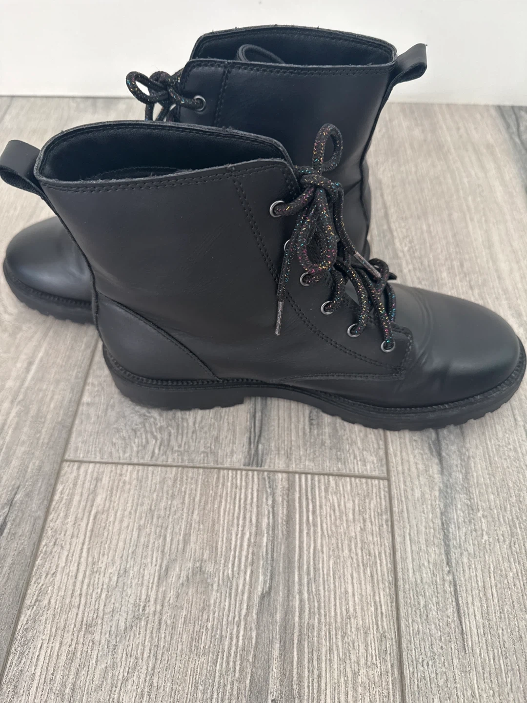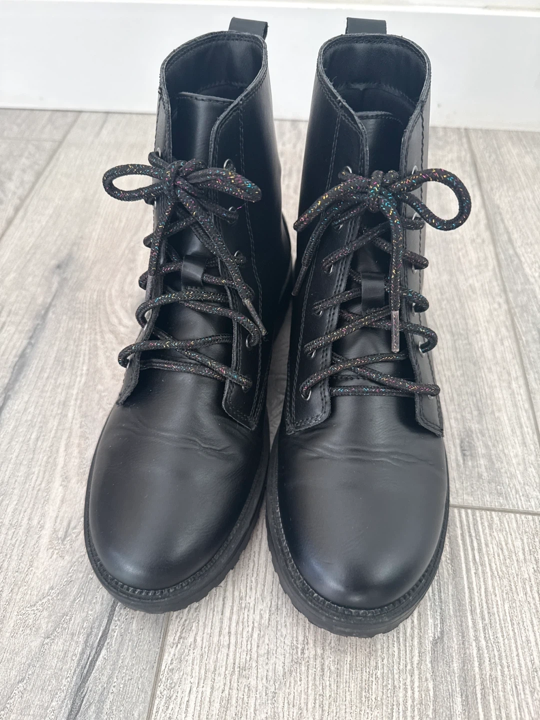 These black ankle boots are in great condition and ready for a new owner! They are a size 5 and feature fun, colourful laces. Perfect for everyday wear!