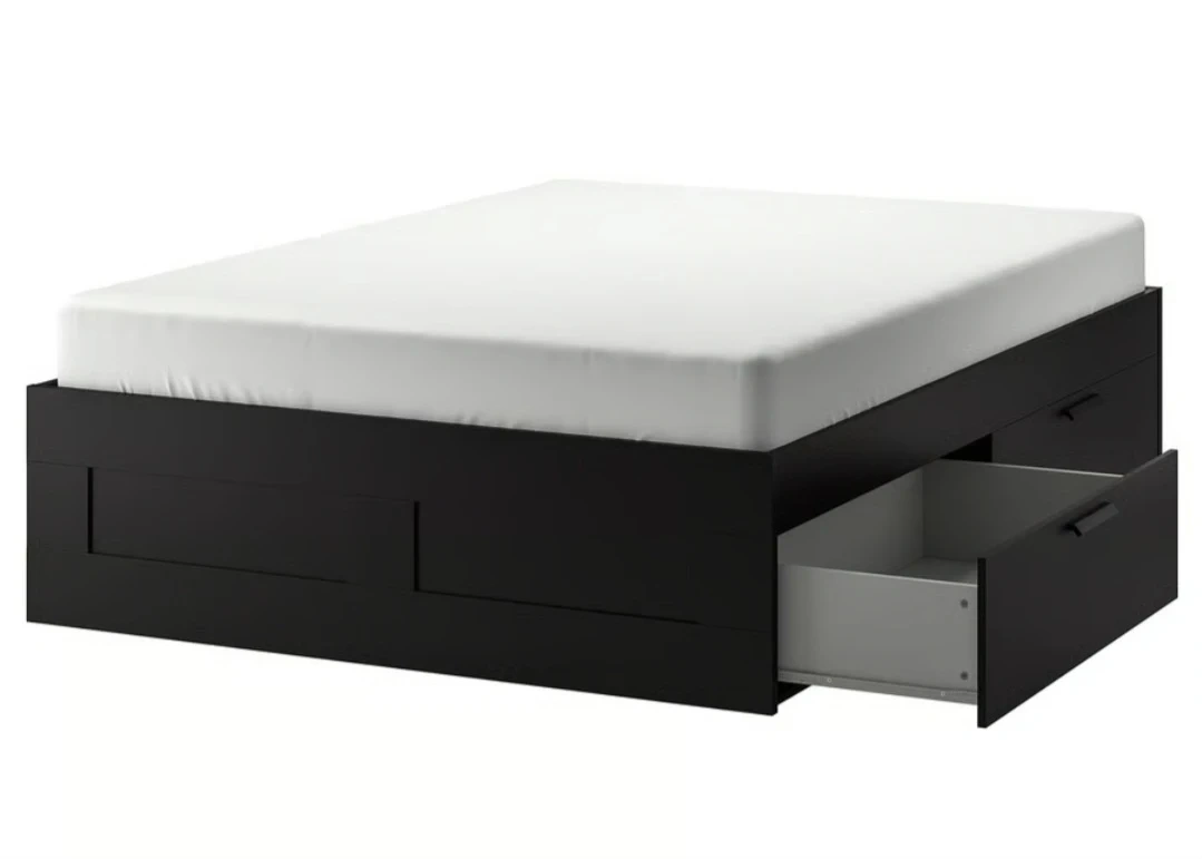 Selling a black IKEA Brimnes bed frame with storage. It's in great shape and offers lots of space with 4 built-in drawers.