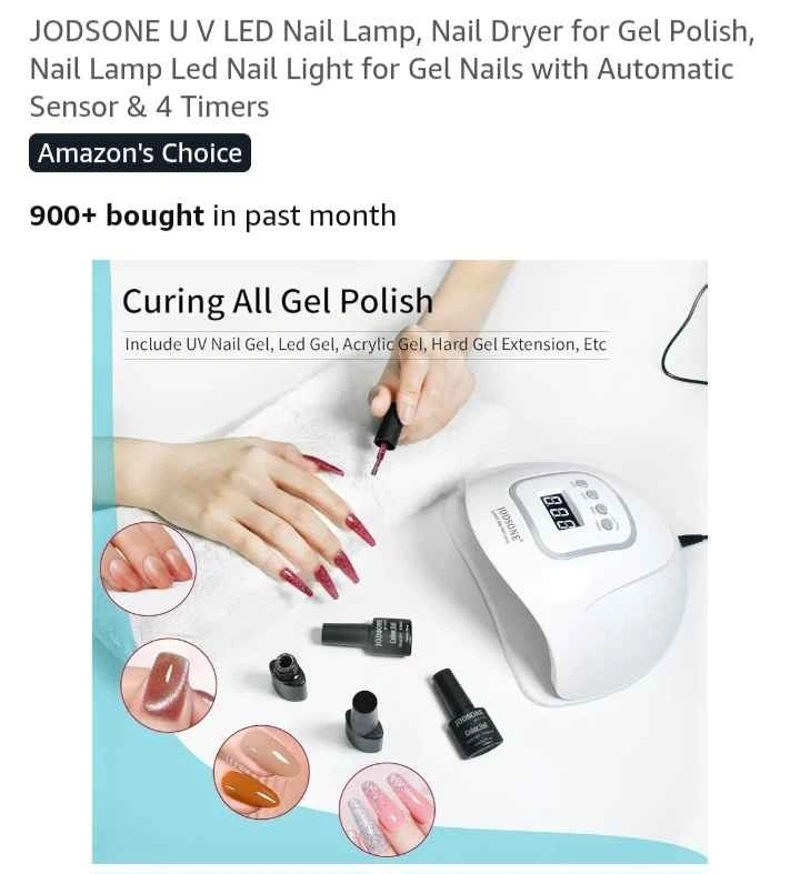 JODSONE U V LED Nail Lamp, Nail Dryer for Gel Polish, Nail Lamp Led Nail Light for Gel Nails with Automatic Sensor & 4 Timers