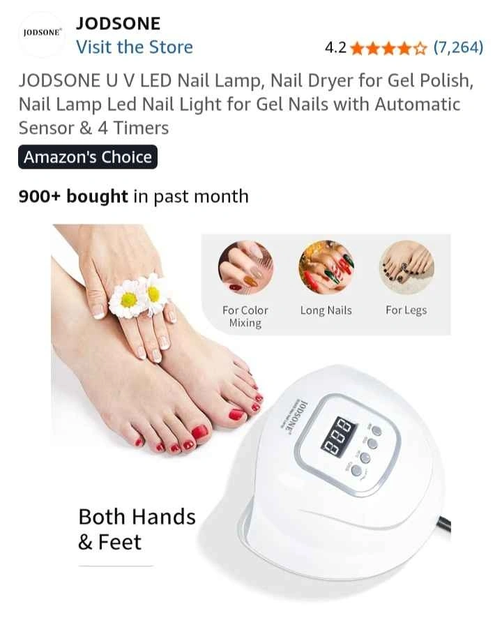 JODSONE U V LED Nail Lamp, Nail Dryer for Gel Polish, Nail Lamp Led Nail Light for Gel Nails with Automatic Sensor & 4 Timers