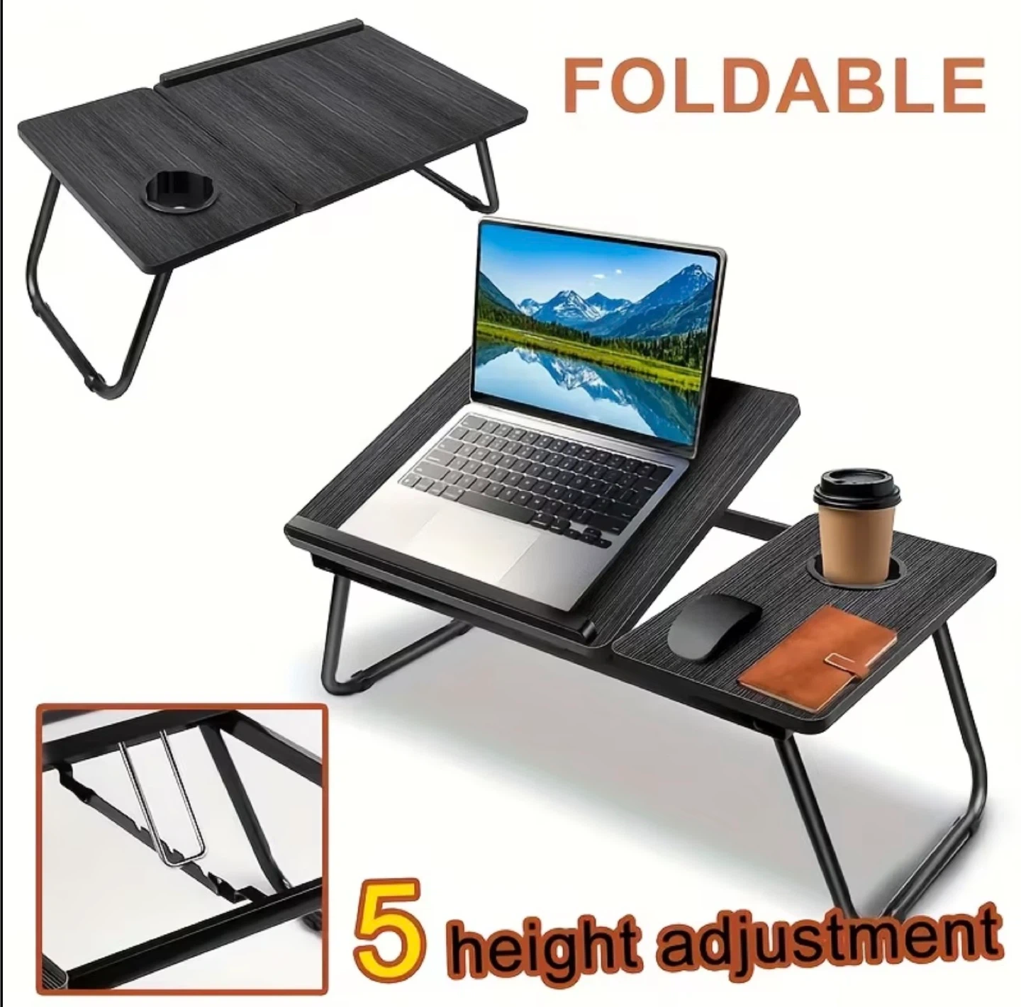 This multi-functional lifting folding table is perfect for working or relaxing in bed! It features an adjustable angle, anti-slip gear strip, and anti-slip feet. Plus, it conveniently folds for easy storage. There's even a cup holder! 5 level flip adjustments