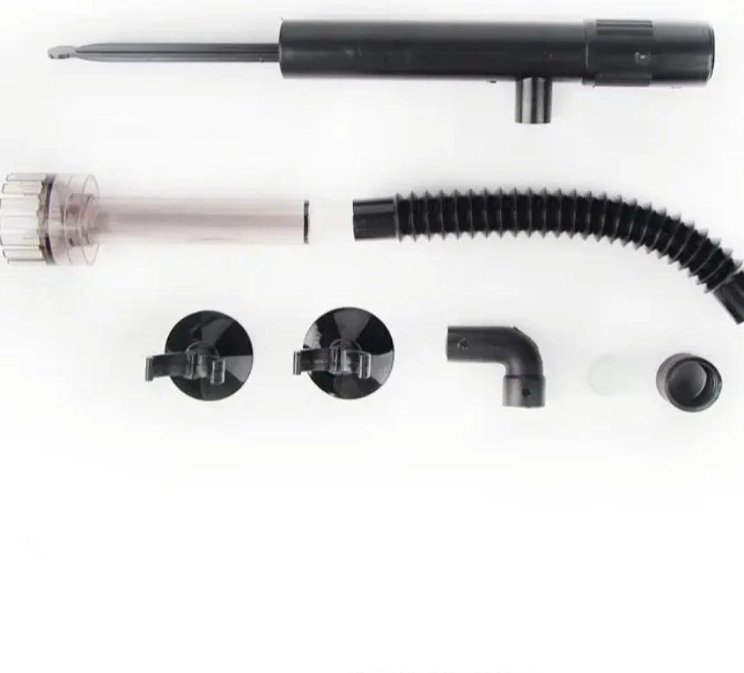 Selling an aquarium gravel cleaner, perfect for keeping your fish tank tidy! It includes all the components you see in the pictures, like the siphon, suction cups, and hoses. Makes water changes and gravel cleaning a breeze!