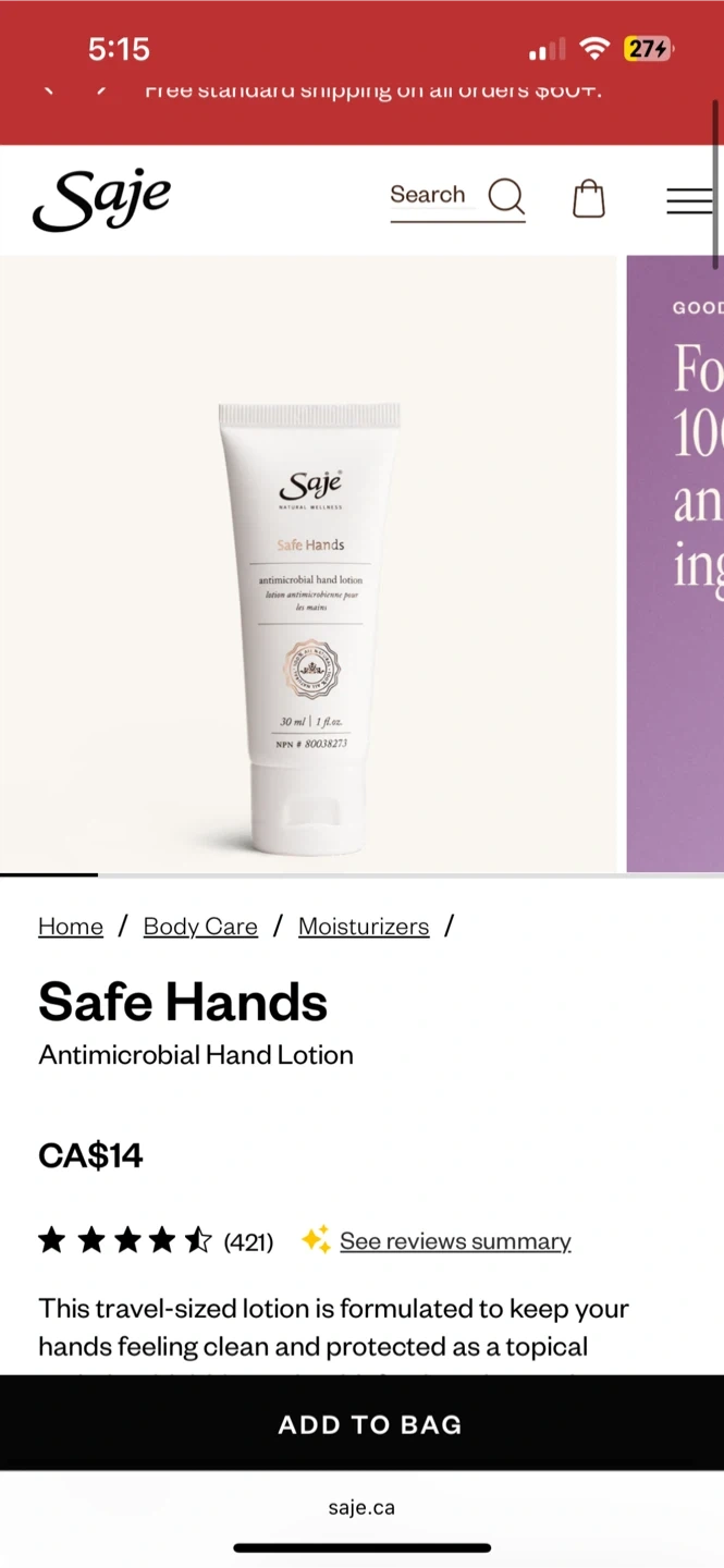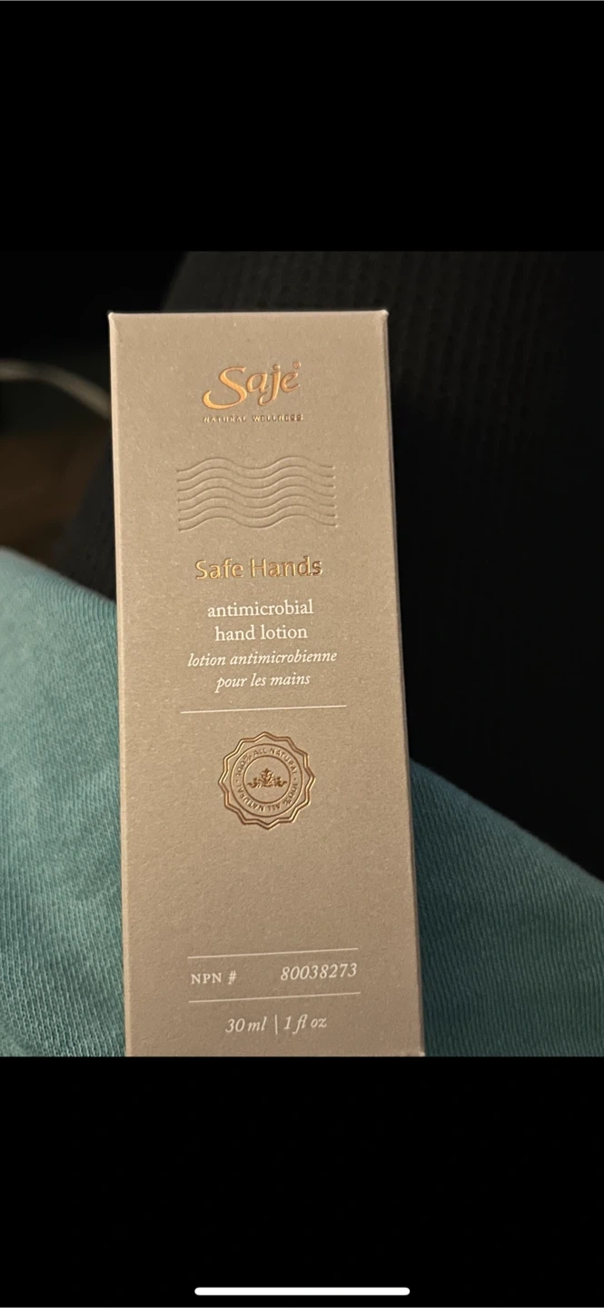 Saje Safe Hands Antimicrobial Hand Lotion! It's a 30ml bottle