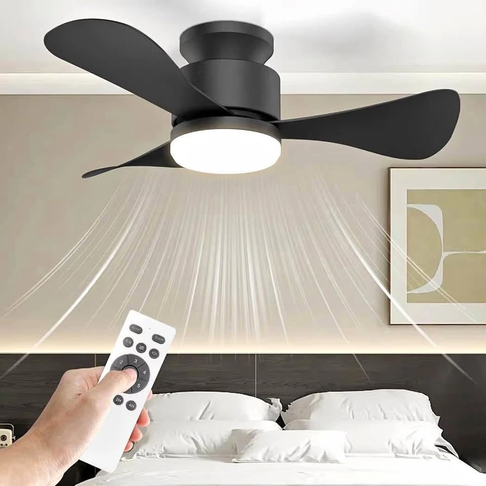 Small Black Ceiling Fan with Light and Remote, 28" Low Profile Ceiling Fan Light with 3 Color Temperature, 6 Speed, Quiet Reversible Flush Mount Ceiling Fan for Bedroom Outdoor.