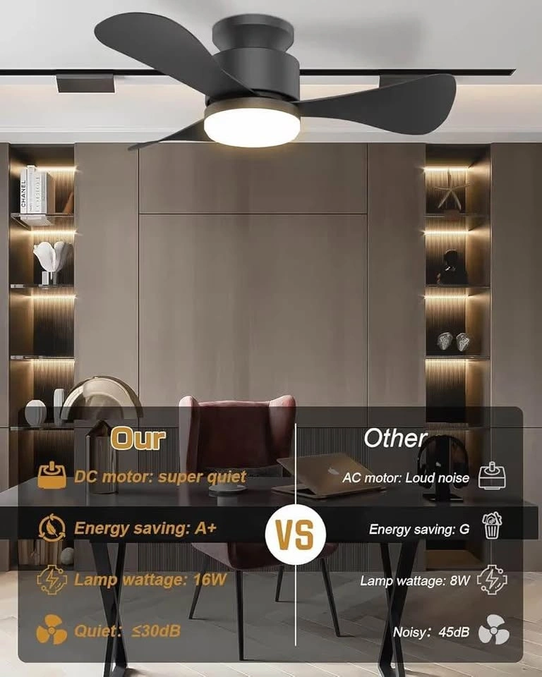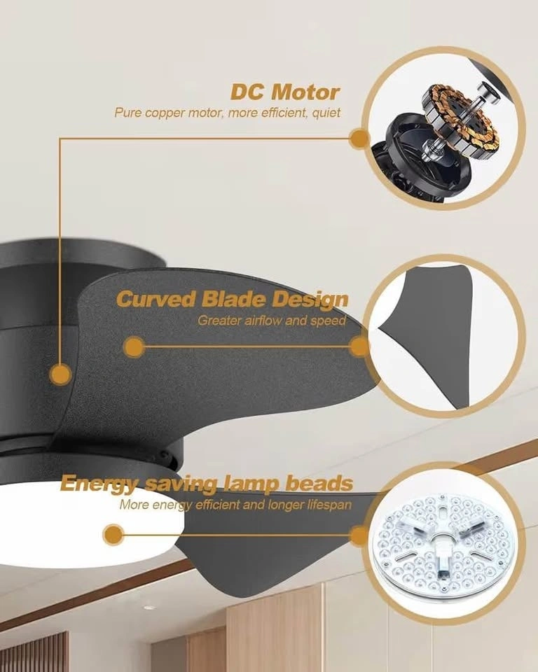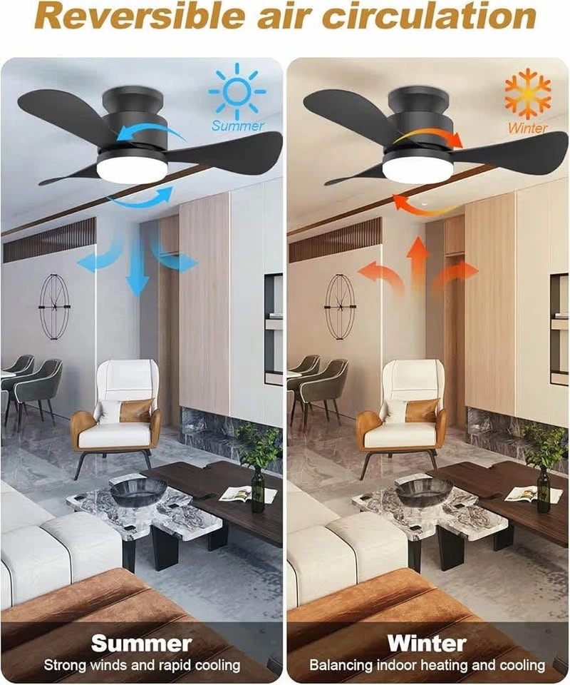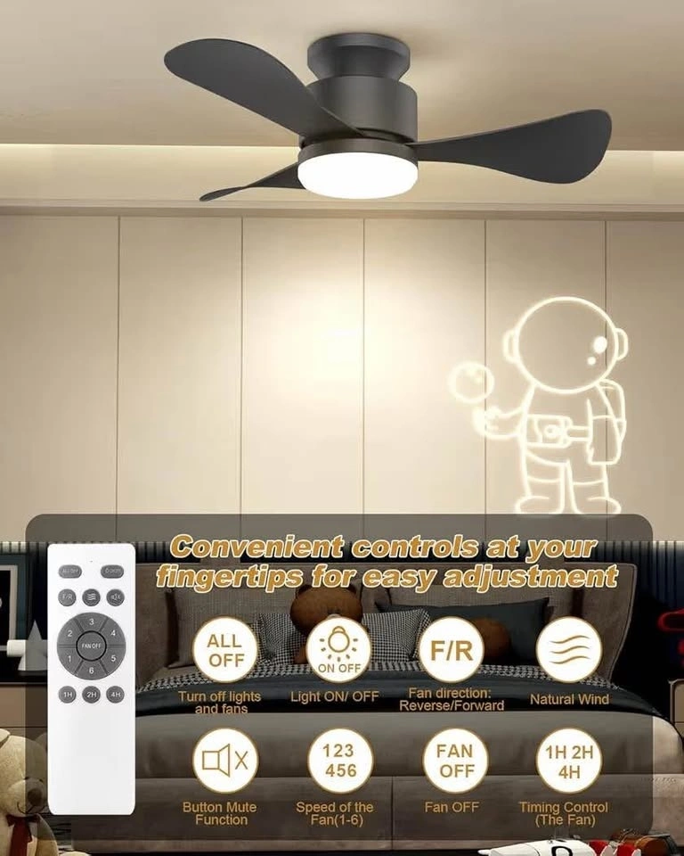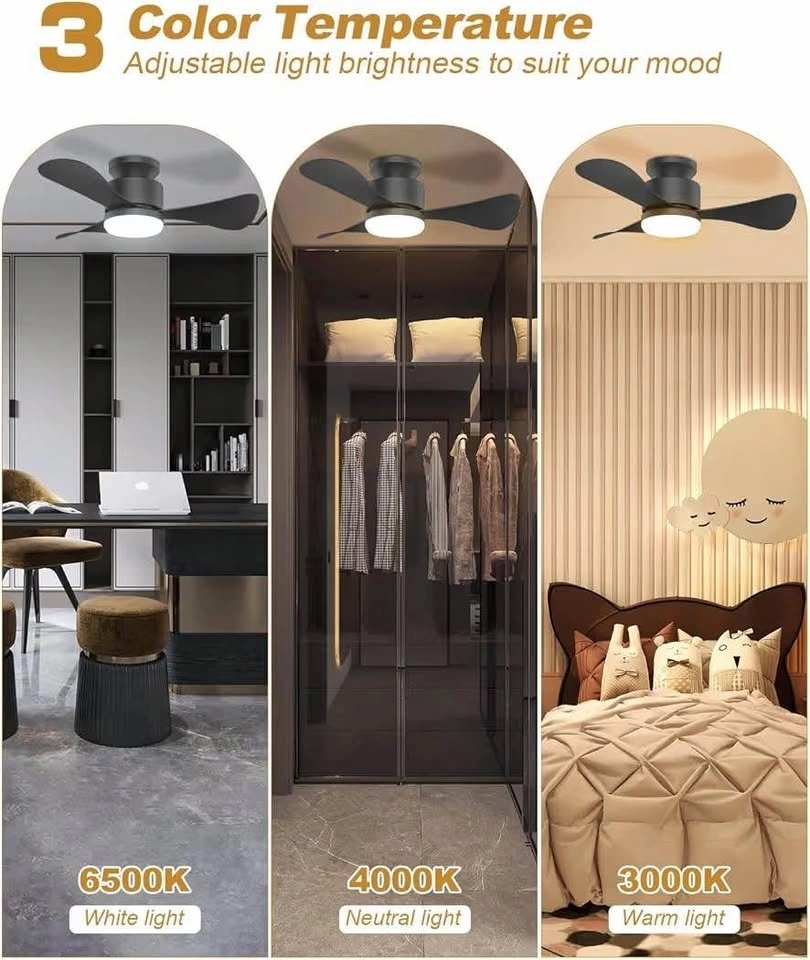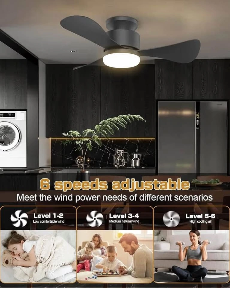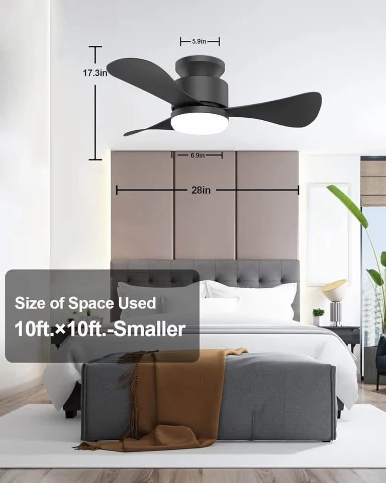 Small Black Ceiling Fan with Light and Remote, 28" Low Profile Ceiling Fan Light with 3 Color Temperature, 6 Speed, Quiet Reversible Flush Mount Ceiling Fan for Bedroom Outdoor.