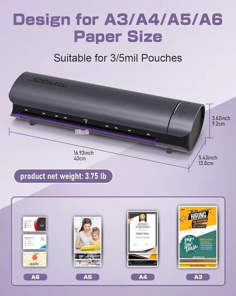 Laminator Machine with 30 Laminating Sheets, A3/A4/A5/A6 Laminating Machine 60s Warm-Up for Teacher Personal, 9 in 1 Cold Thermal Laminator No Jam, 13 Inch Laminate Machine for Home School Use