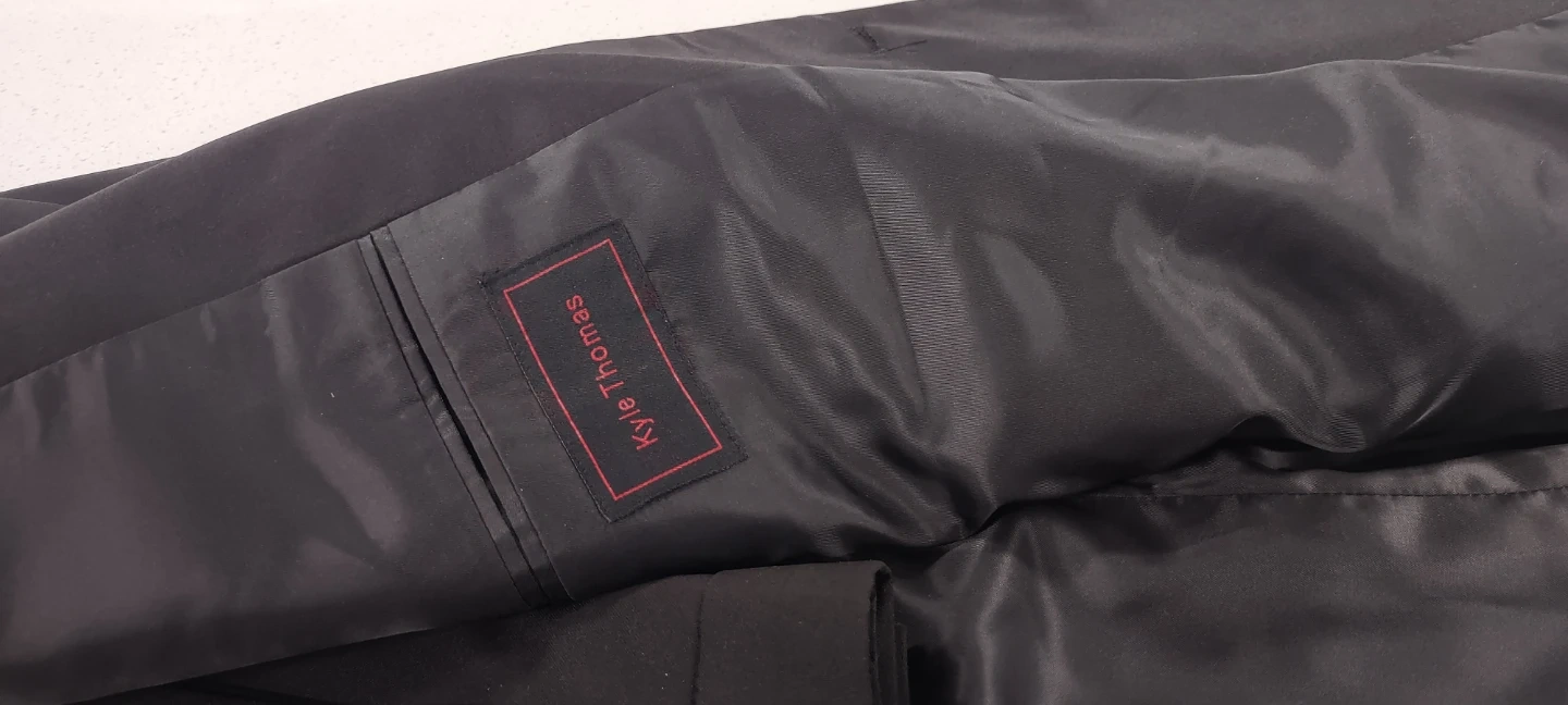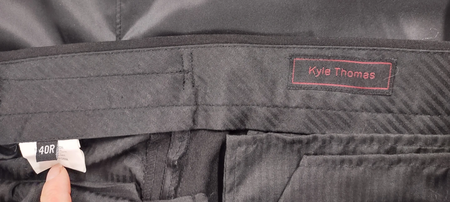 Here's a black blazer from Kyle Thomas! Yexido jacket size XL 48. Slacks size is 40R (As you can see in the photo, the waist circumference is adjustable)