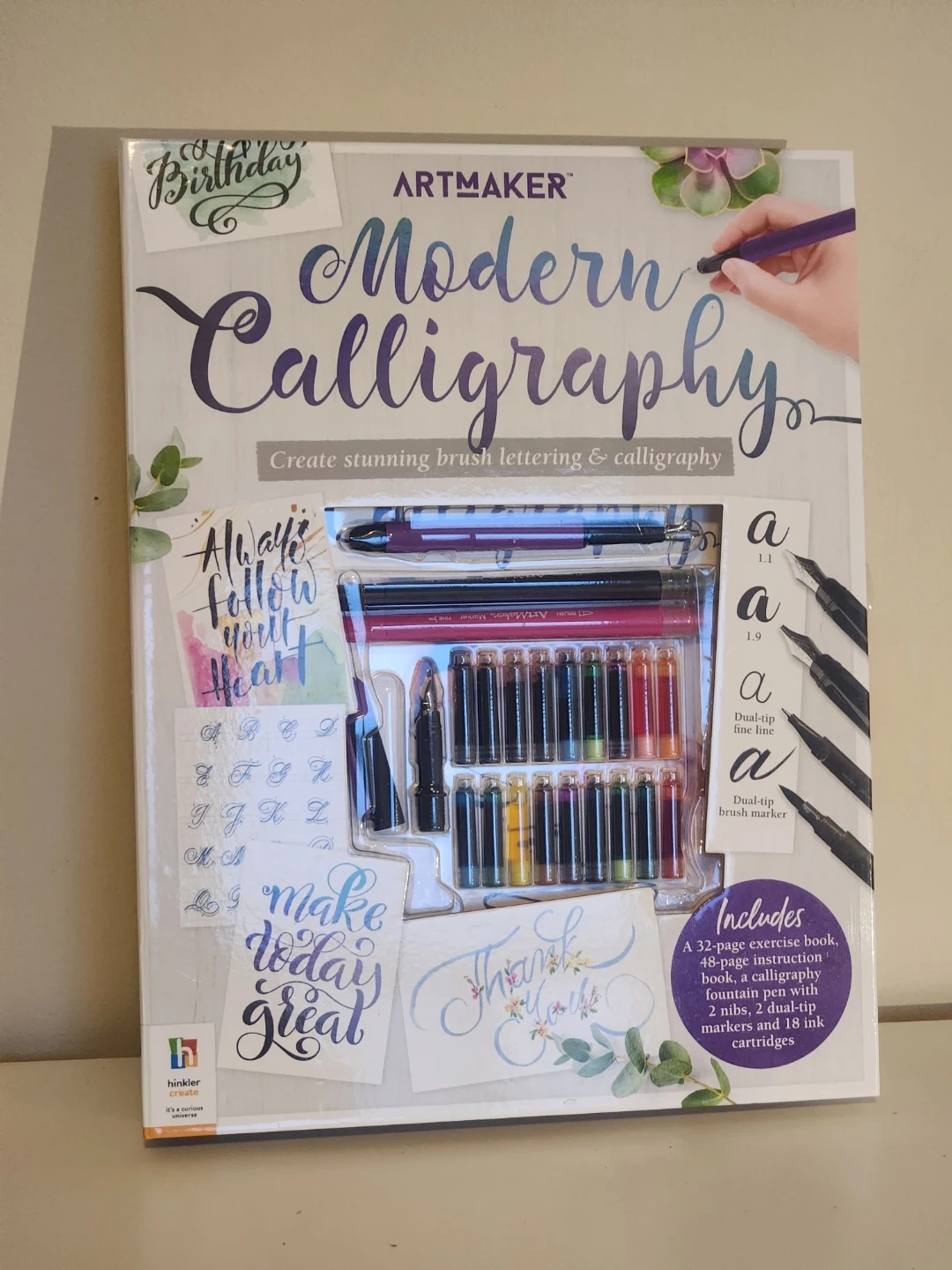 Selling a brand new Artmaker Modern Calligraphy set! includes a 32-page exercise book, a 48-page instruction book, a calligraphy fountain pen with 2 nibs, 2 dual-tip markers, and ink cartridges. Perfect christmas gift for artistic people wanting to learn Calligraphy!