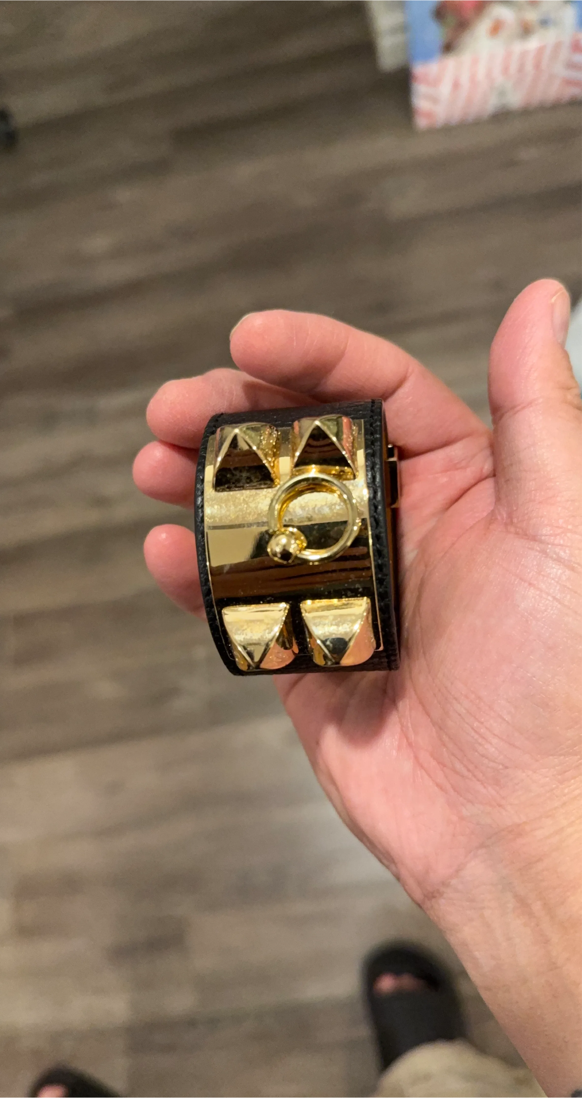 Selling a beautiful Hermès Collier de Chien (CDC) bracelet. This stylish accessory features a distinctive design with gold-tone hardware and black leather. It's a statement piece that adds a touch of luxury to any outfit!