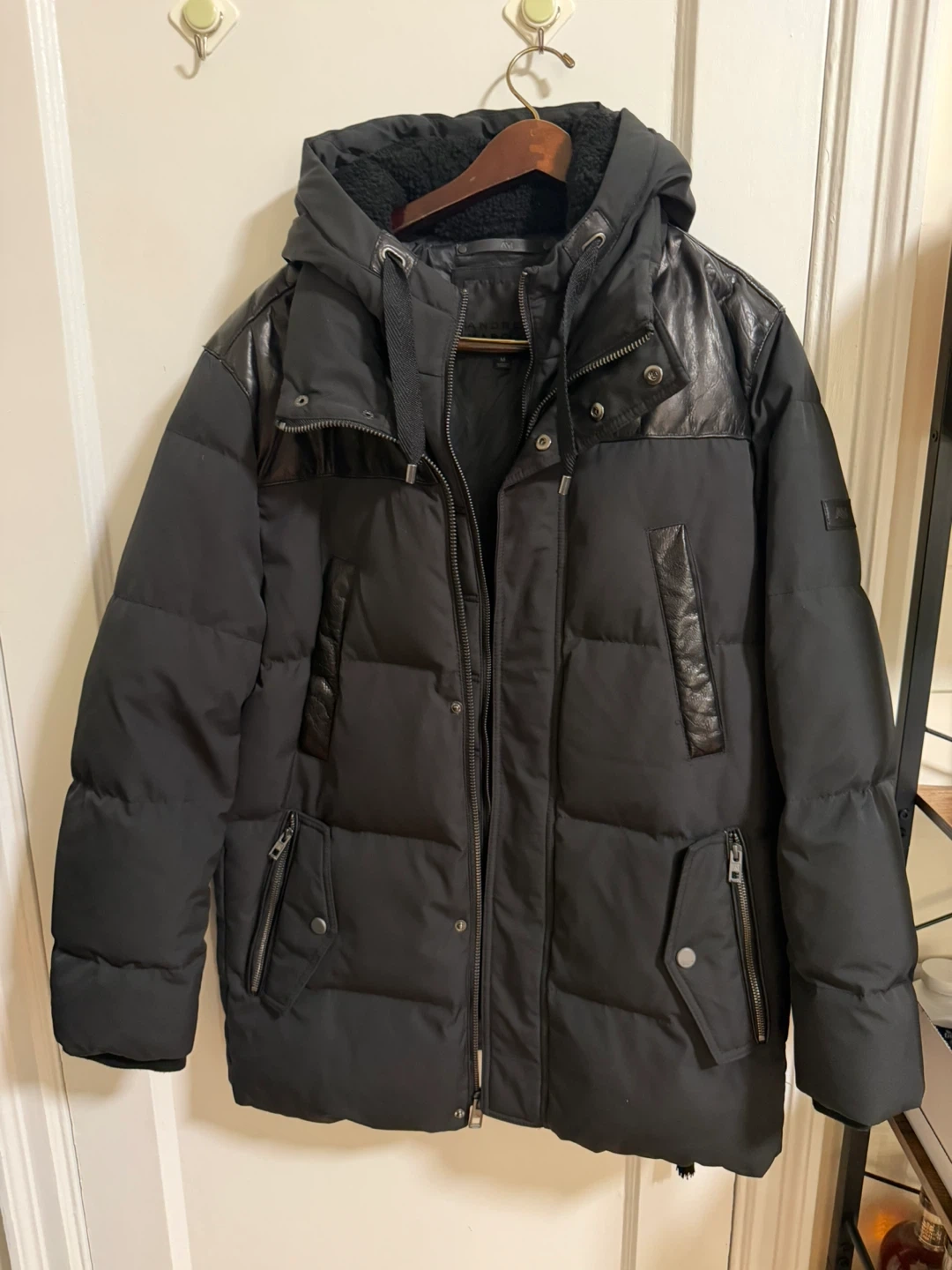 Selling a stylish Andrew Marc puffer jacket in black, size Medium, in perfect, like-new condition — worn minimally.