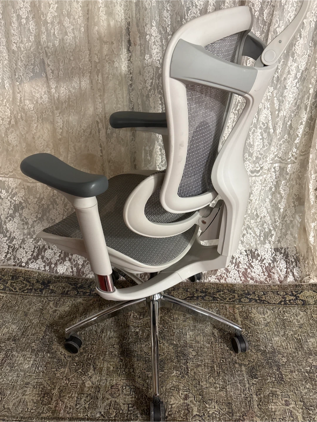 Selling a SIHOO ergonomic office chair. It's in great condition and ready for a new workspace. The chair features a mesh back for breathability and adjustable armrests for comfort. A comfortable and supportive chair for long hours!