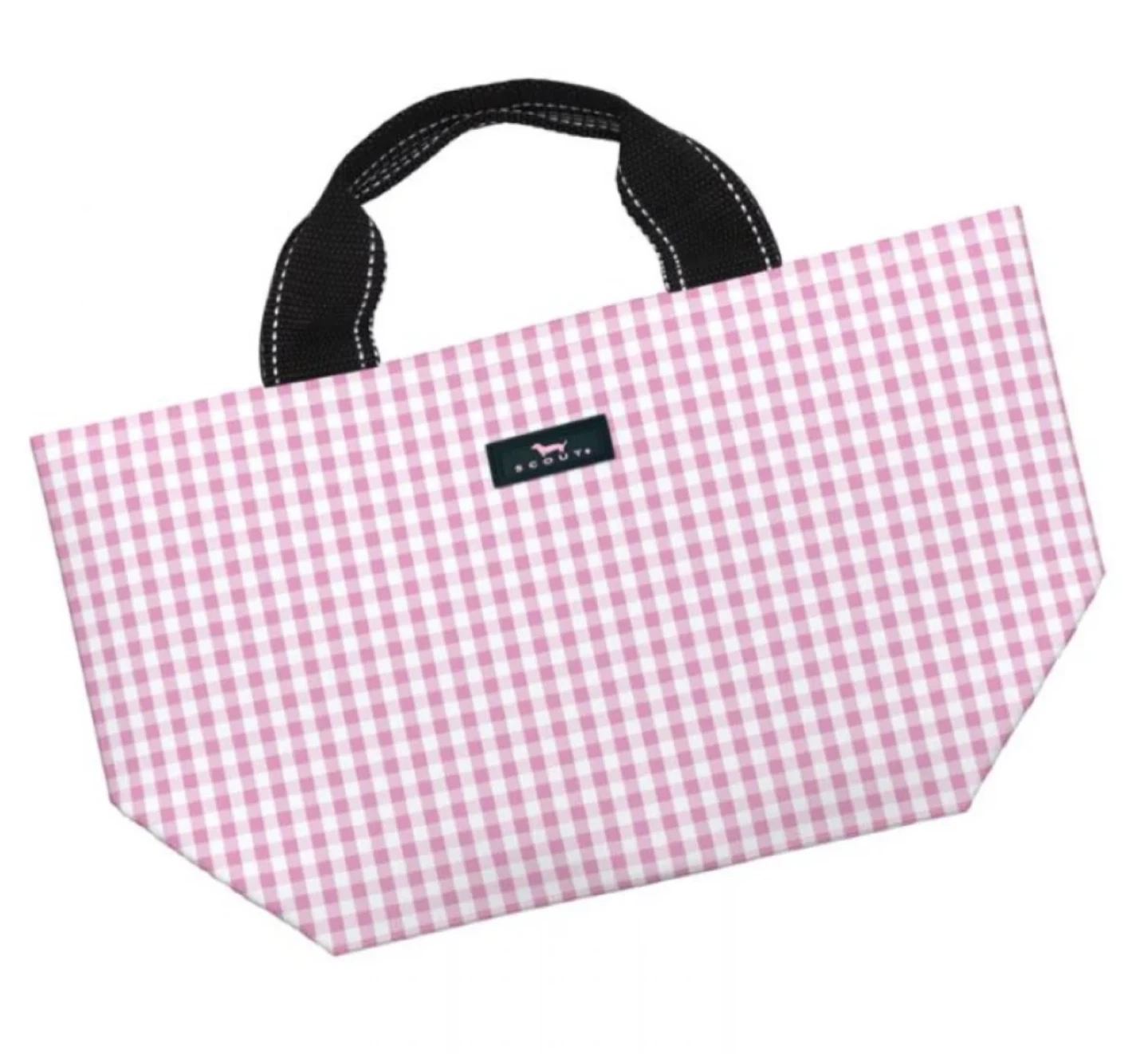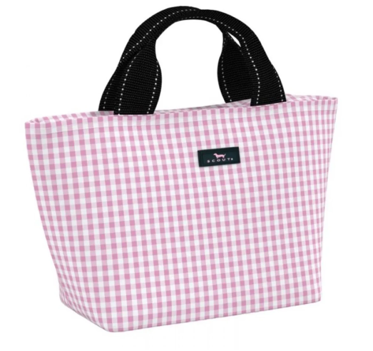 This Scout Nooner Lunch Box is perfect for keeping your lunch cool and stylish! It features a cute pink gingham pattern and black handles. Great for school, work, or picnics!