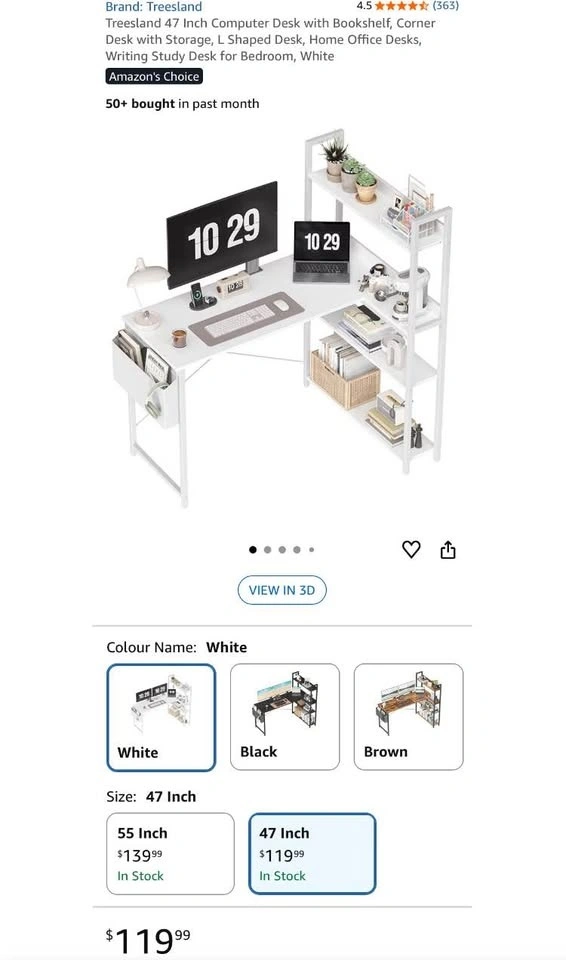 • Includes shelf/storage area for books, accessories, or office items