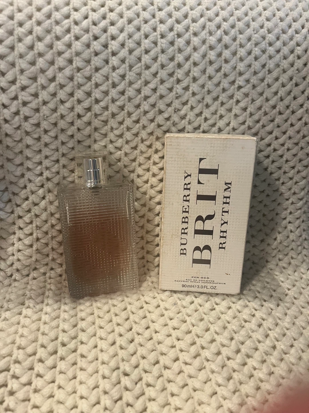 Selling a bottle of Burberry Brit Rhythm for Her. It's a 90ml bottle of eau de toilette. Perfect for everyday wear!