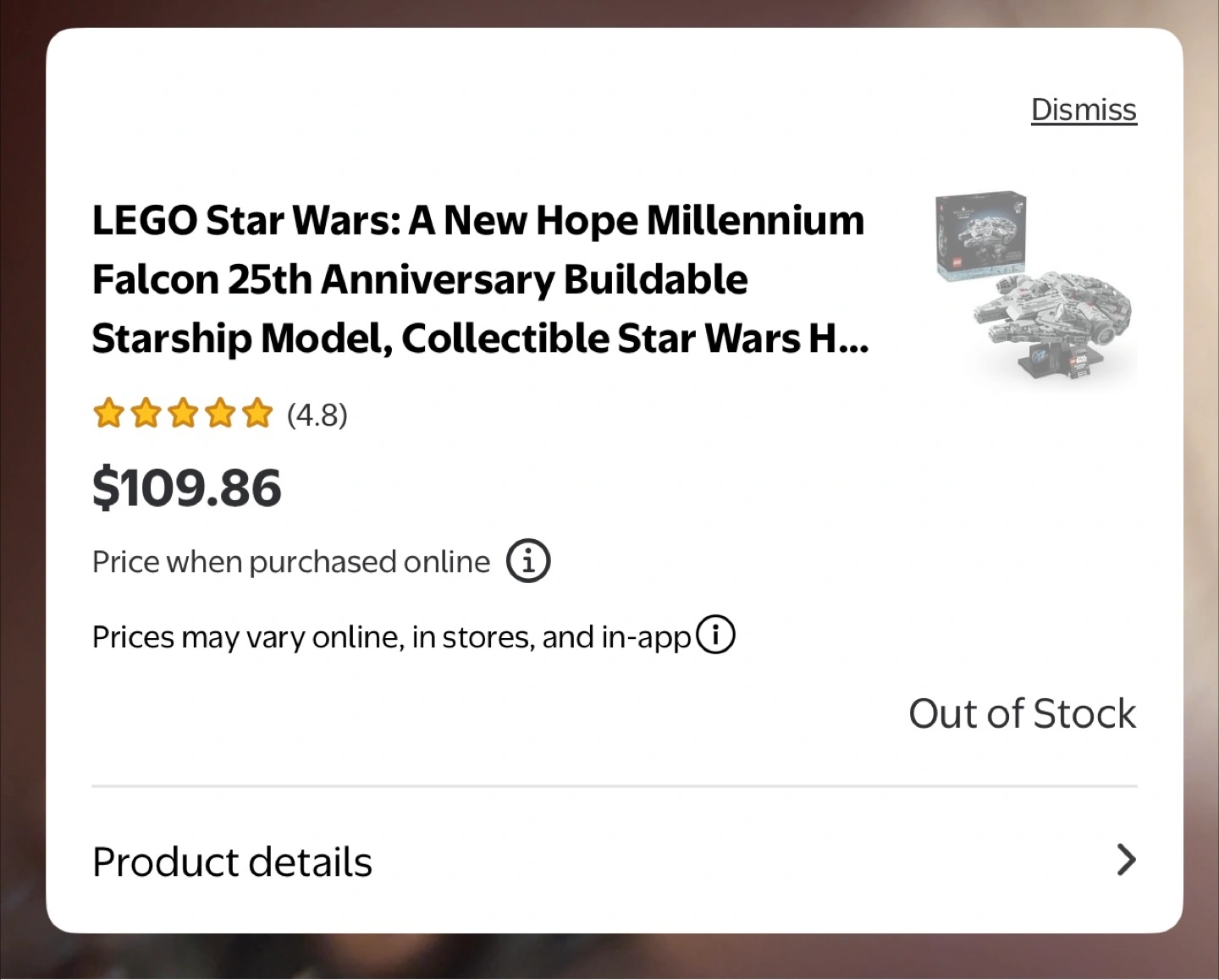 Selling a LEGO Star Wars: A New Hope Millennium Falcon 25th Anniversary buildable starship model, set number 75375