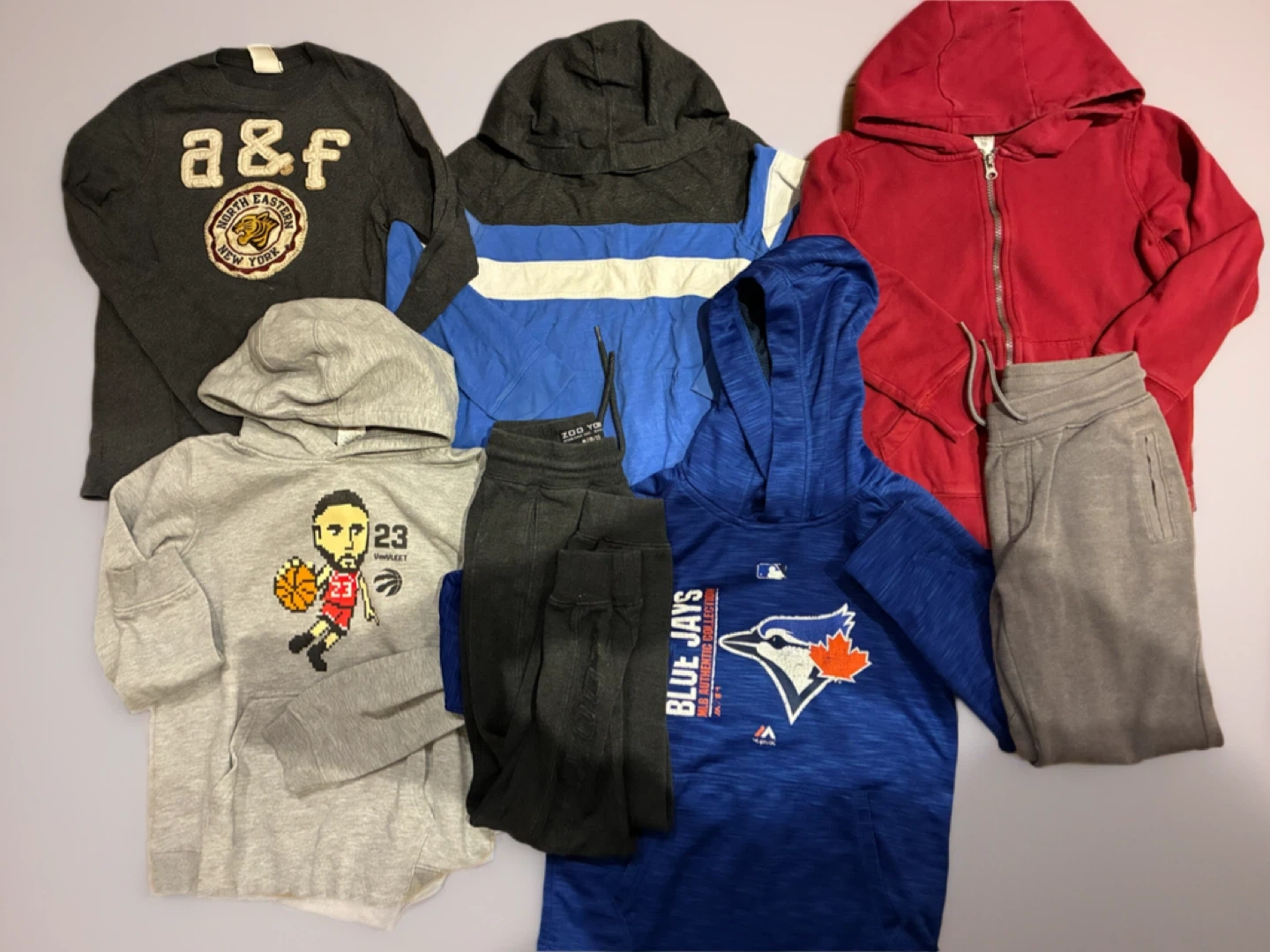 Selling a bundle of kids' clothing in great condition! Included are items from Abercrombie & Fitch, a Toronto Blue Jays hoodie, and Zoo York sweatpants in size M (10/12). A great mix for your little one's wardrobe