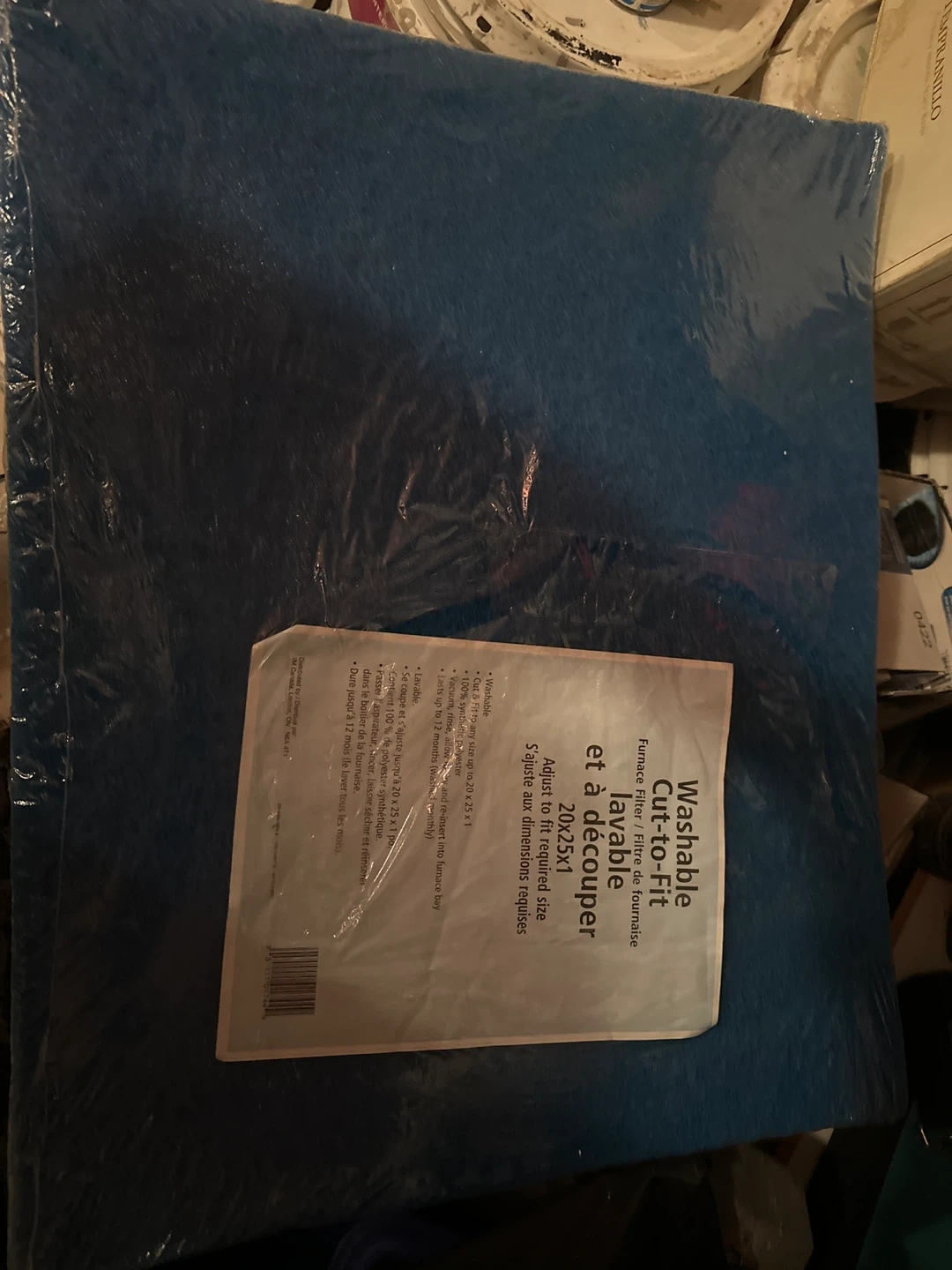 Selling a washable, cut-to-fit furnace filter. It's size 20x25x1 and can be adjusted to fit the required size. It's made of 100% synthetic polyester and lasts up to 12 months when washed monthly