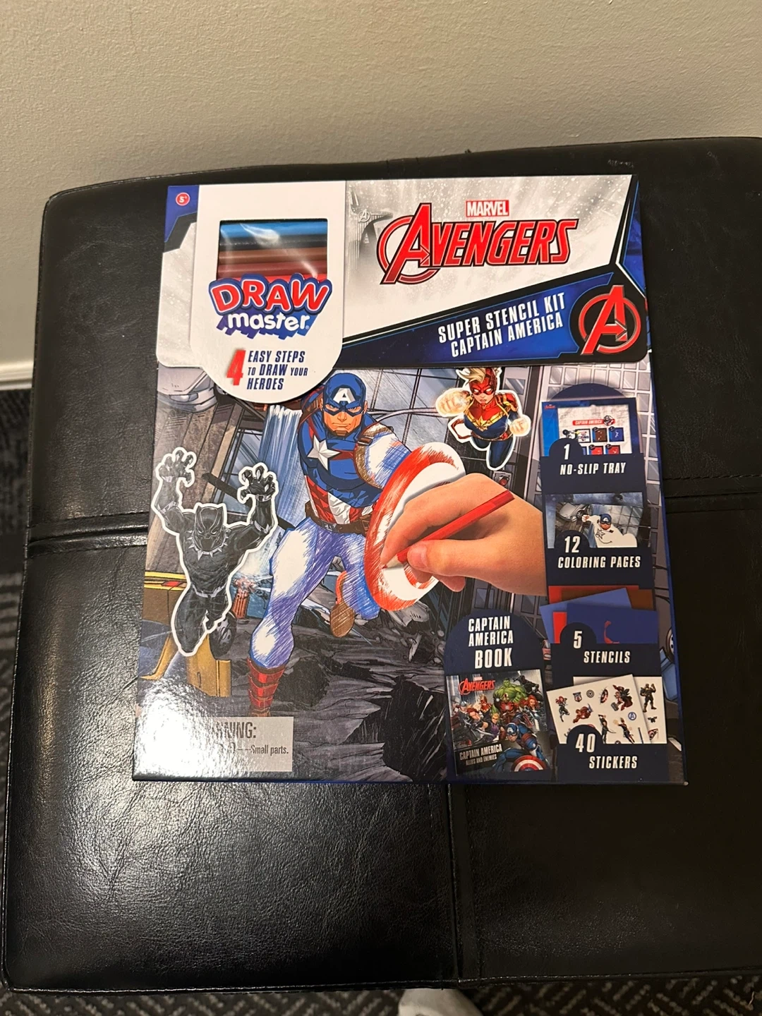 Get your little one drawing their favourite heroes with this Marvel Avengers Captain America Super Stencil Kit! It includes 12 backgrounds, 40 stickers, 5 stencil sheets, 2 drawing pencils, a no-slip tray, and instructions. Plus, it comes with a Captain America book to inspire their creativity.