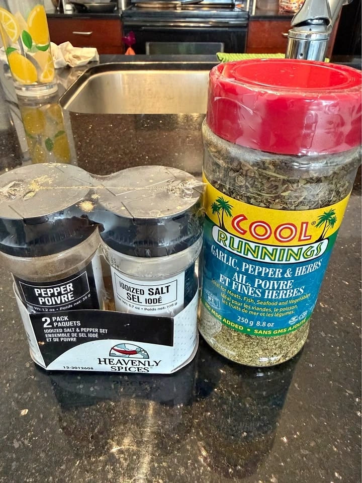 Cool Runnings Garlic, Pepper & Herbs Seasoning – 250g. Includes pack of Salt & Pepper shakers. All bottles brand new & sealed. Perfect for cooking, BBQ, marination & daily use. Pick up: SW Calgary. Check my other listings for more kitchen items and clothing collection.