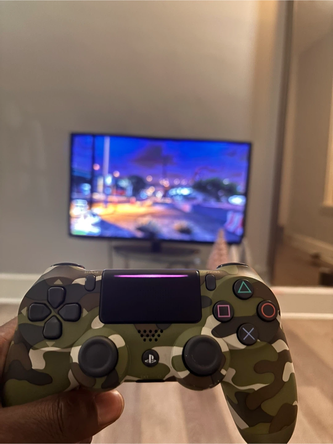 Selling a used PlayStation 4 console. It comes with a cool camouflage controller