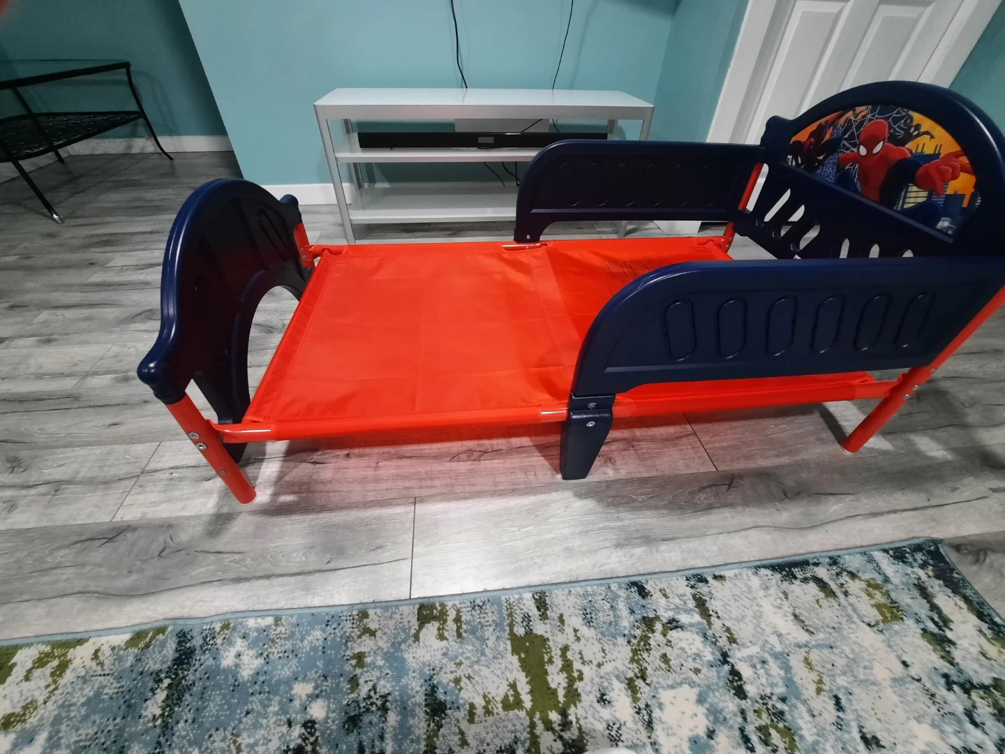 Looking to sell this Spider-Man toddler bed! It's in great shape and perfect for transitioning your little one from a crib to a bed. The bright red and blue colours will surely make bedtime more fun. It's sturdy and safe, designed with your child's comfort in mind