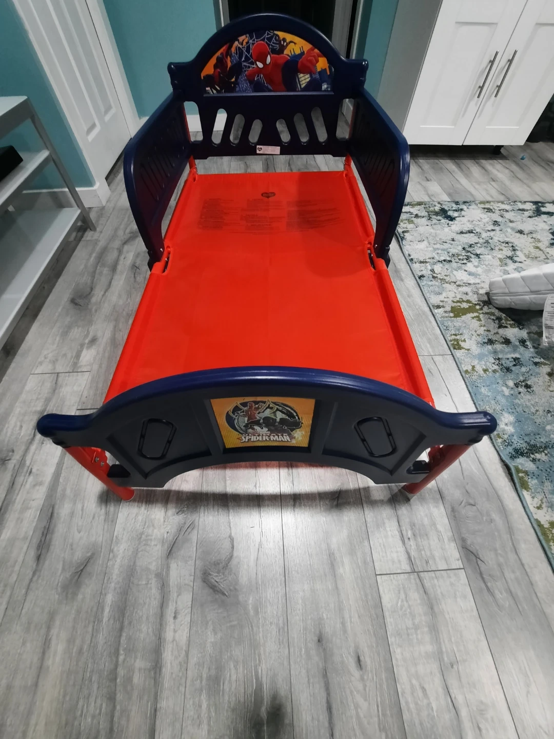 Looking to sell this Spider-Man toddler bed! It's in great shape and perfect for transitioning your little one from a crib to a bed. The bright red and blue colours will surely make bedtime more fun. It's sturdy and safe, designed with your child's comfort in mind