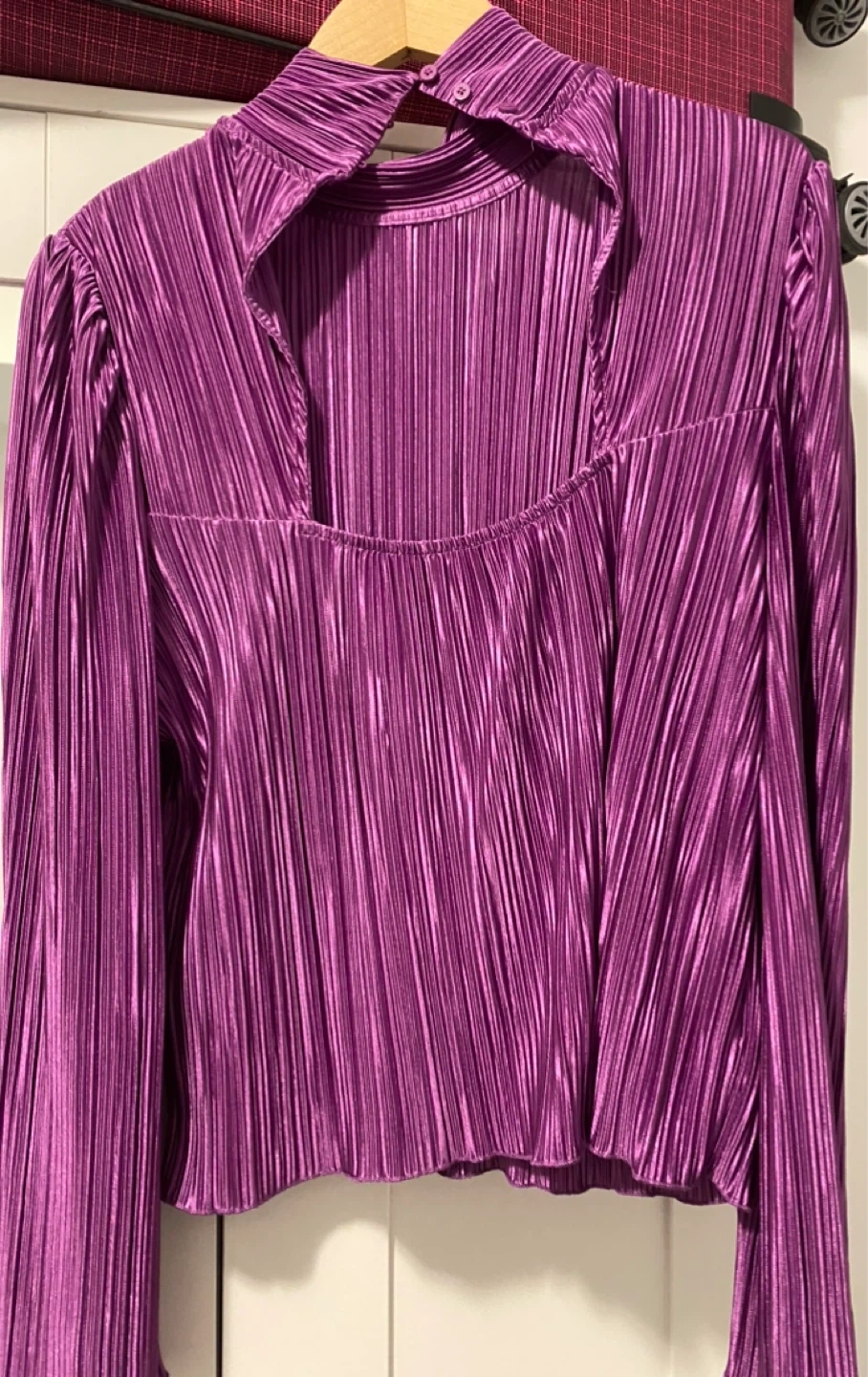 Selling a stylish purple pleated long sleeve top. It's in great condition and perfect for adding a pop of colour to your wardrobe! The pleated texture gives it a unique and fashionable look