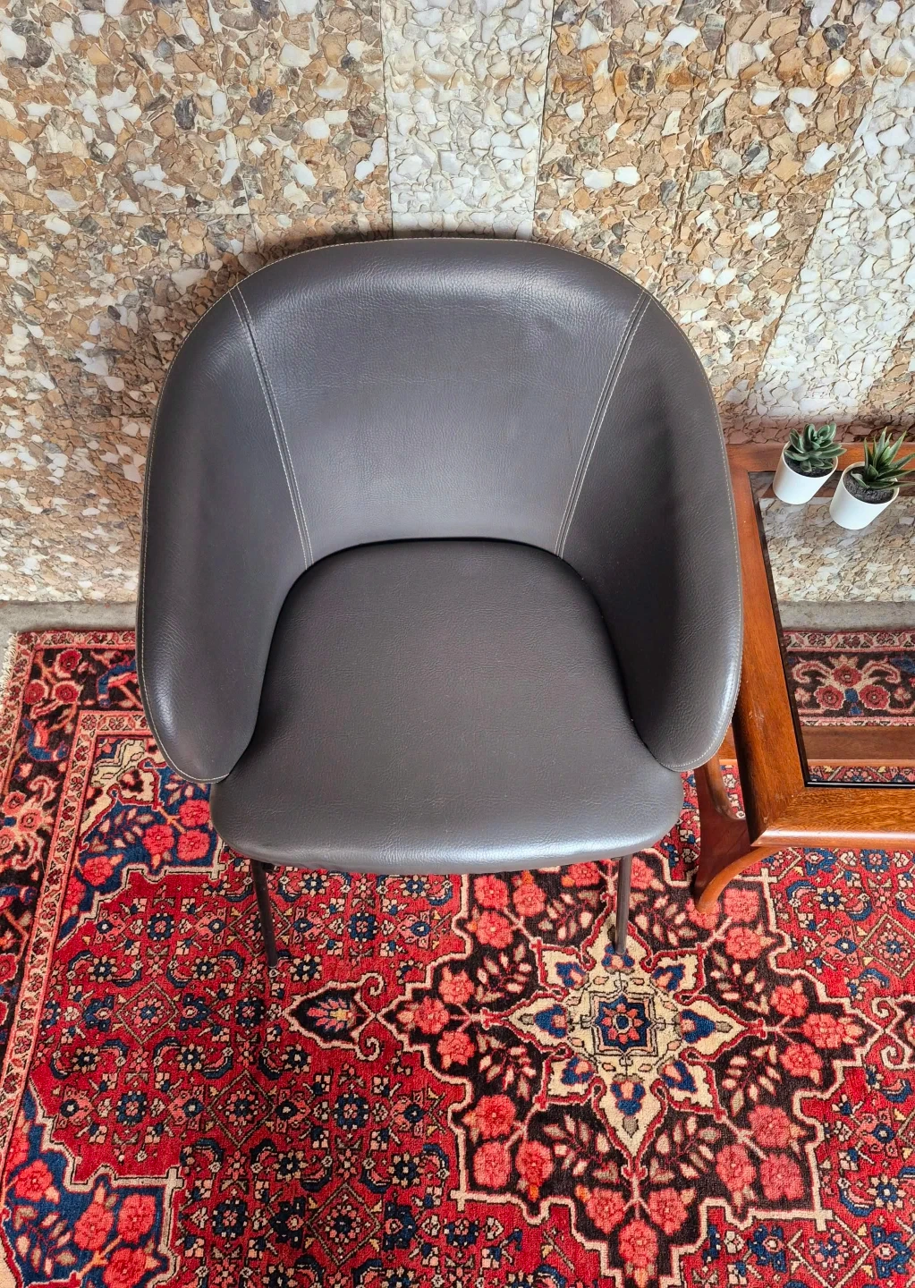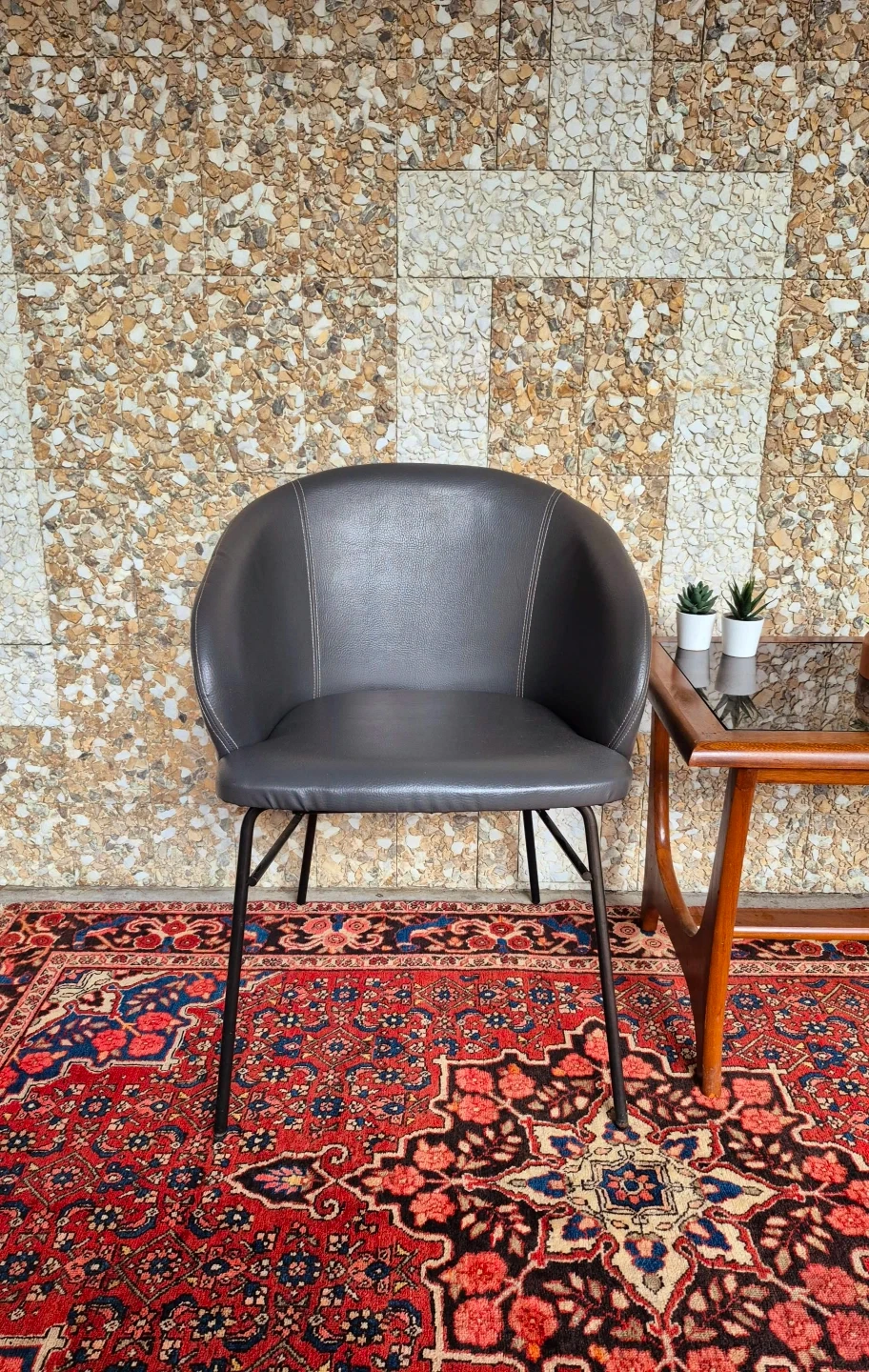 Set Of 10 Grey Leather Accent Bucket Chairs (Price Per Chair)